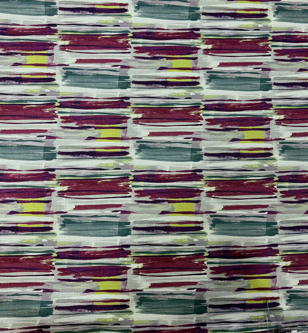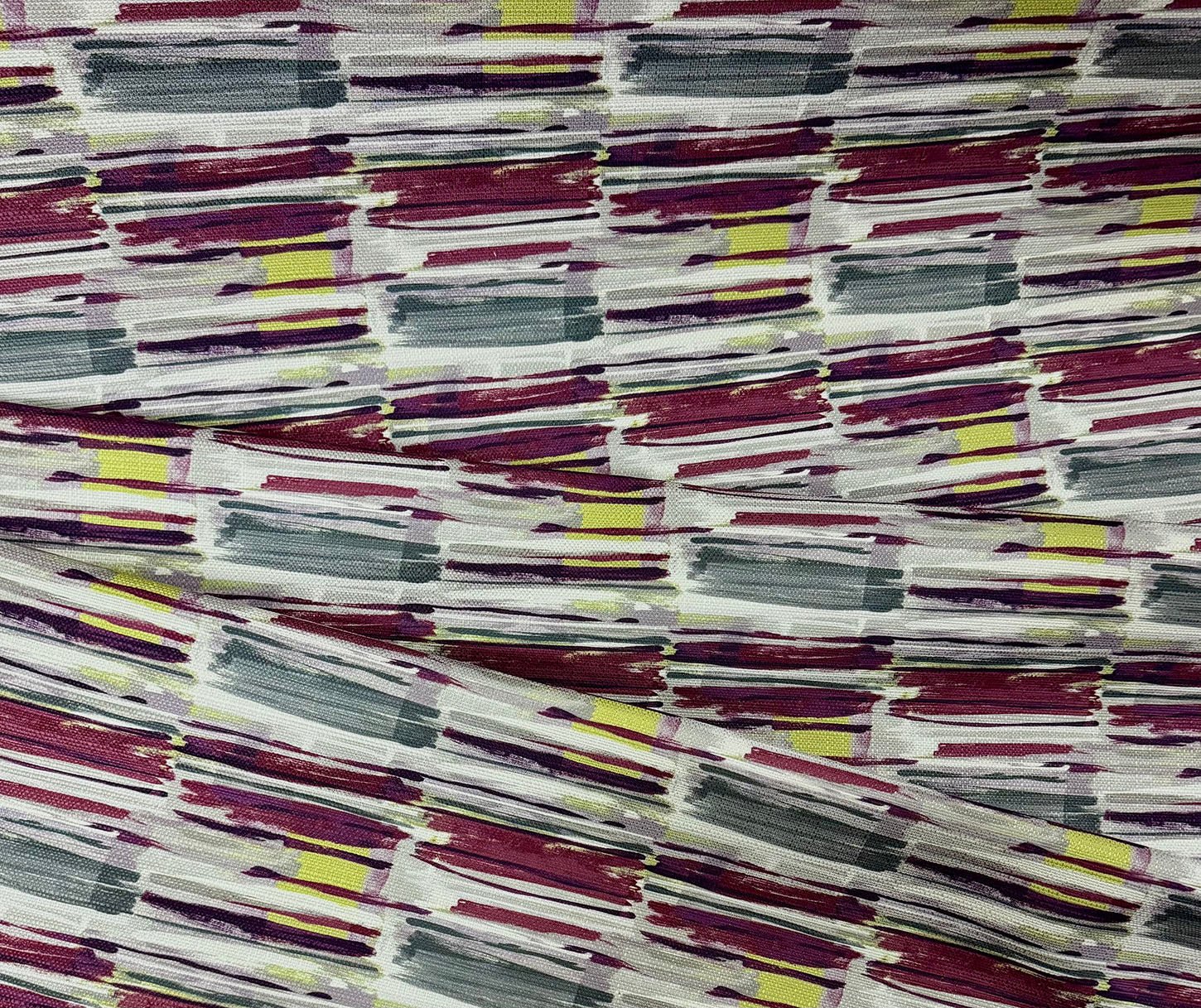Abstract Stripe, 54" wide, 100% Polyester, Repeats: H=13.5" V=13.5', Double Rubs 40,000 This is a limited quantity fabric, get it while supply last. This special buy fabric is a unique find and is a one-time offer. Once it's sold out, you won’t be able to reorder, so make sure to get enough yardage.