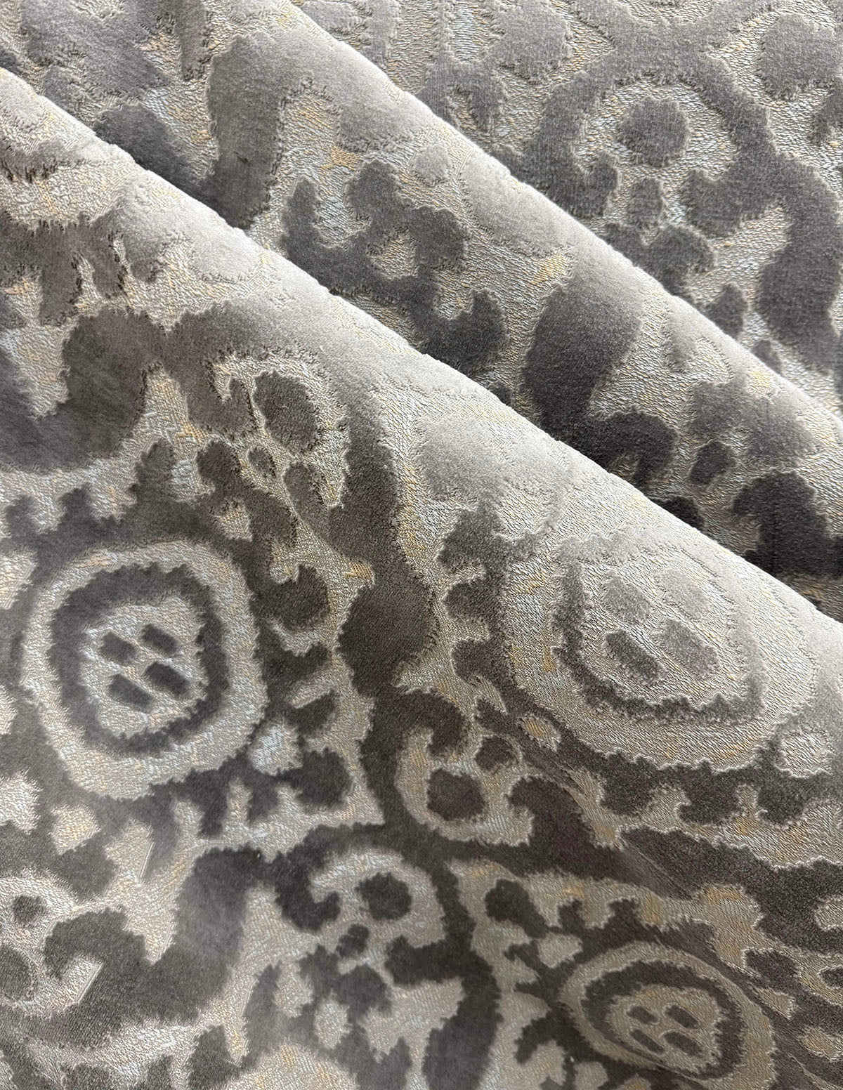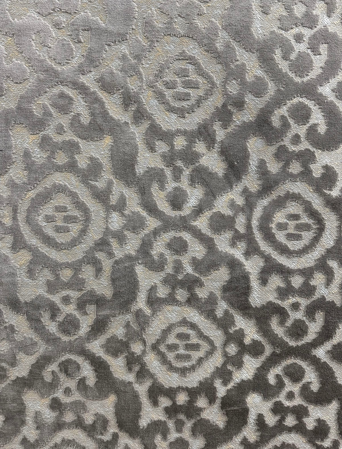 Cut Velvet Medallion, 54" wide, 100% polyester, Repeat: H=13.6" V=13.8" Double Rubs 15,000