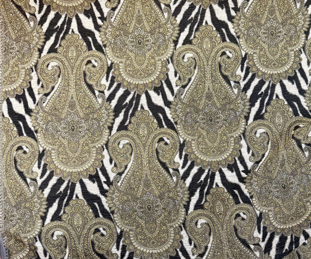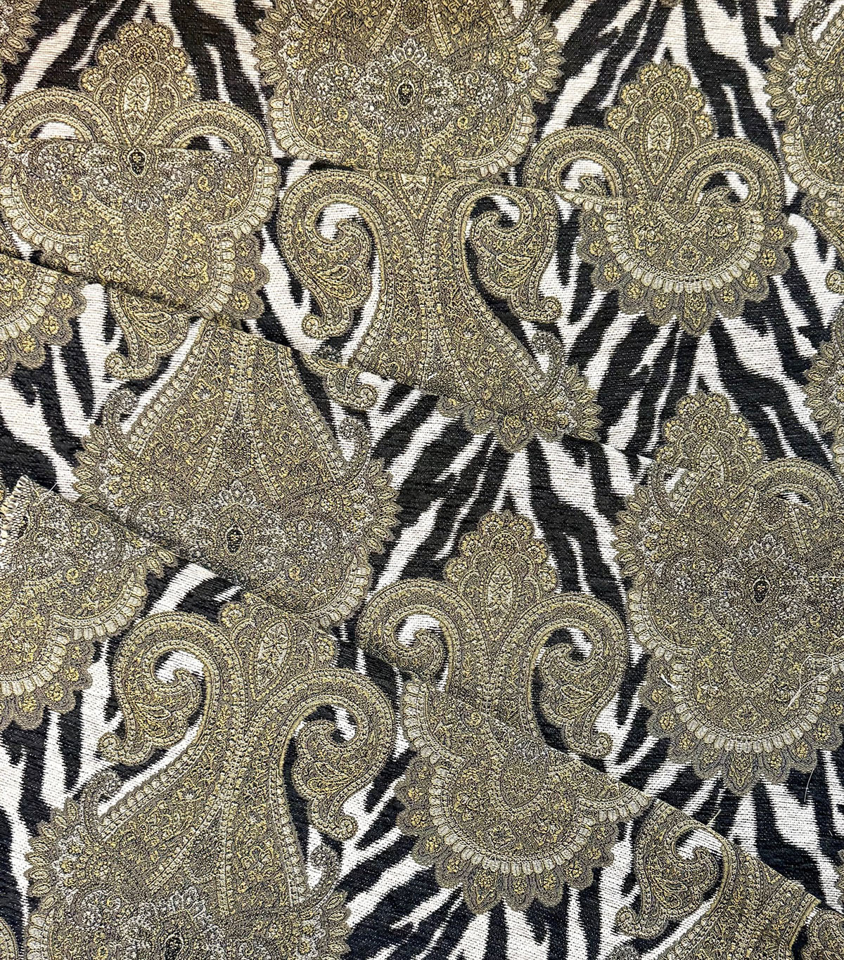 Little Kahuna in Charcoal is a Chenille Zebra & Medallion Tapestry, 55" wide, 100% Polyester, Repeats: H=14 V=18 Double Rubs: 31,000