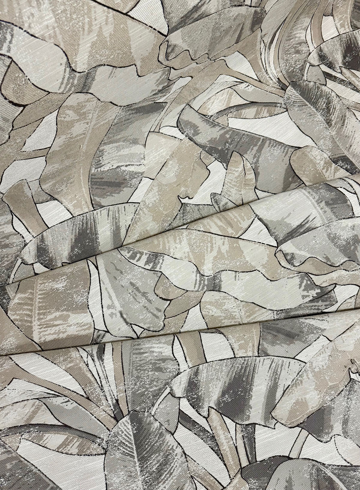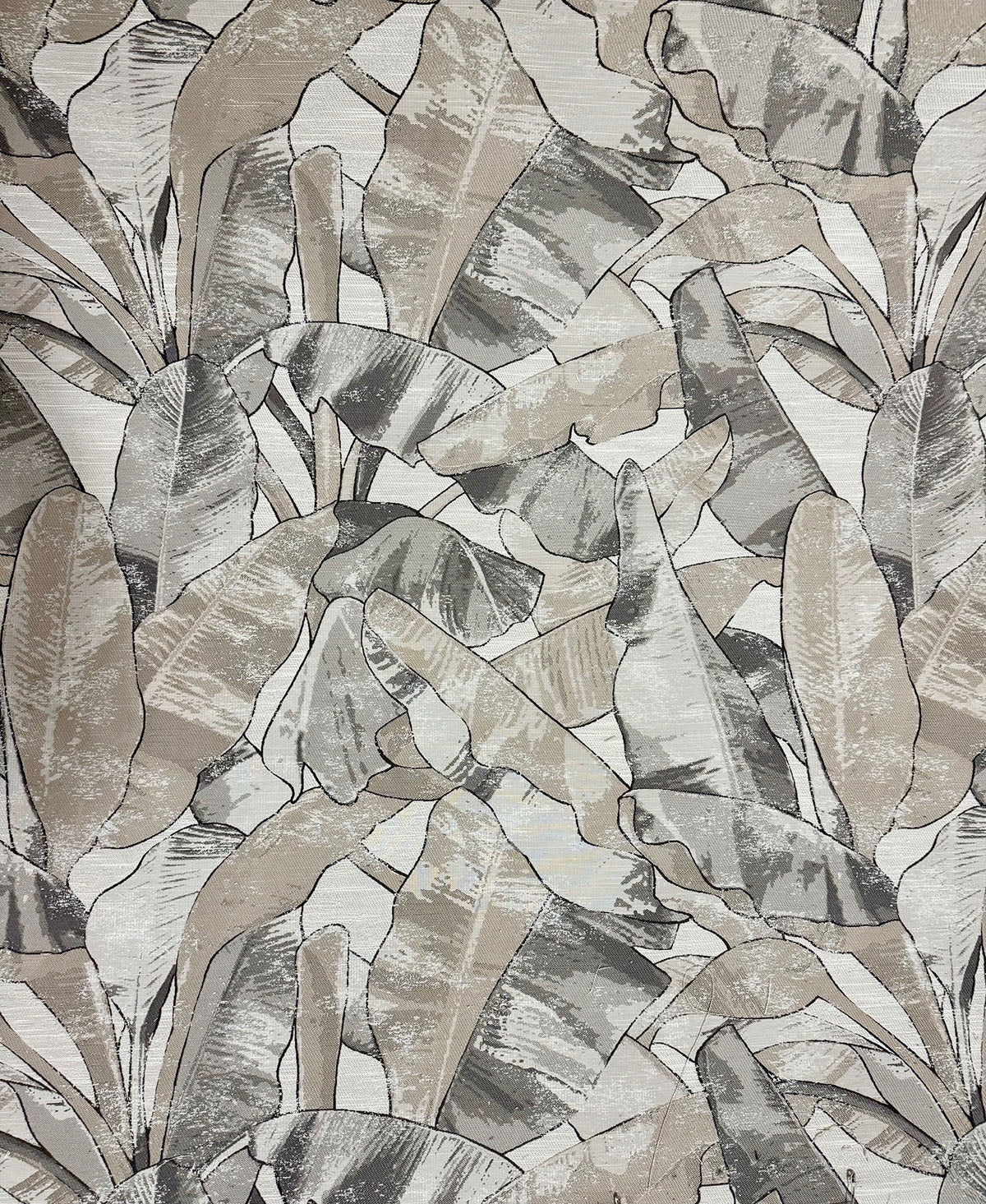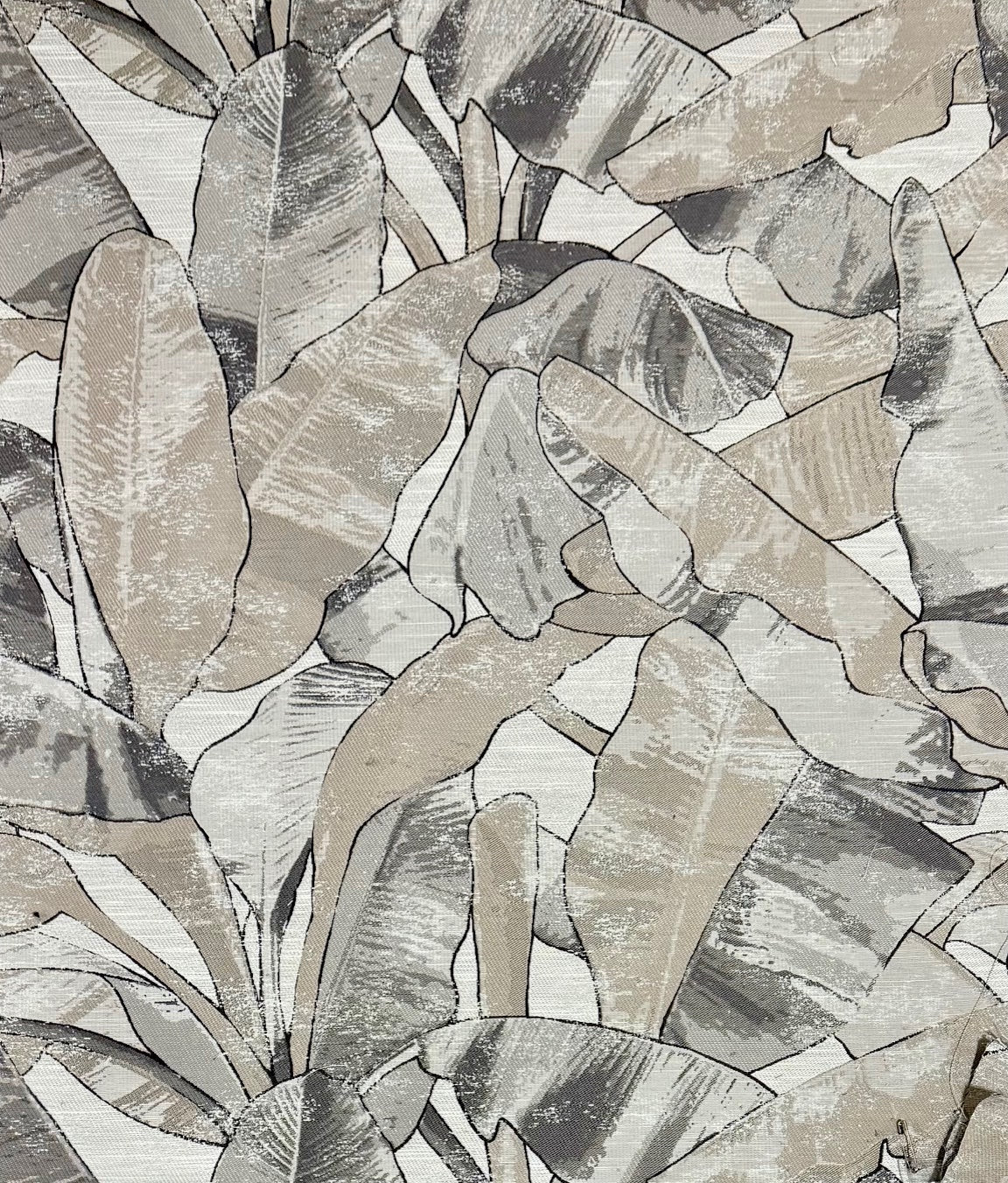 R-Zambia in color Stone is a Large Tropical Leaf Jacquard fabric, 54" Wide, 100% Polyester, Repeats: H=29.5" V=29.13" Double Rubs: 25,000