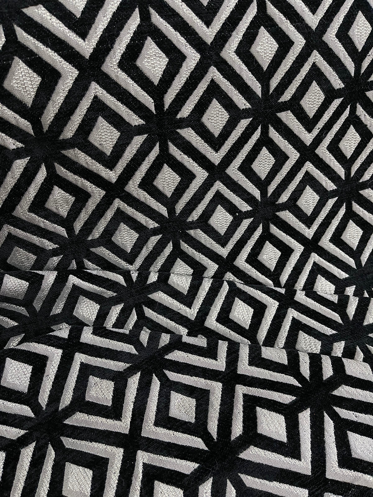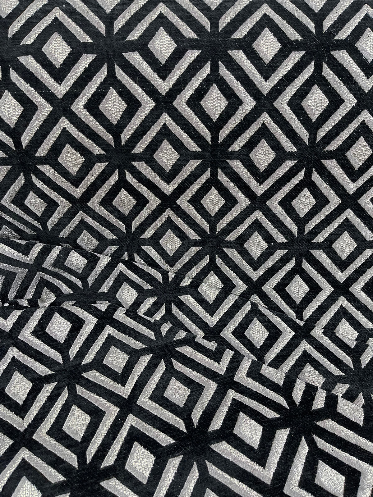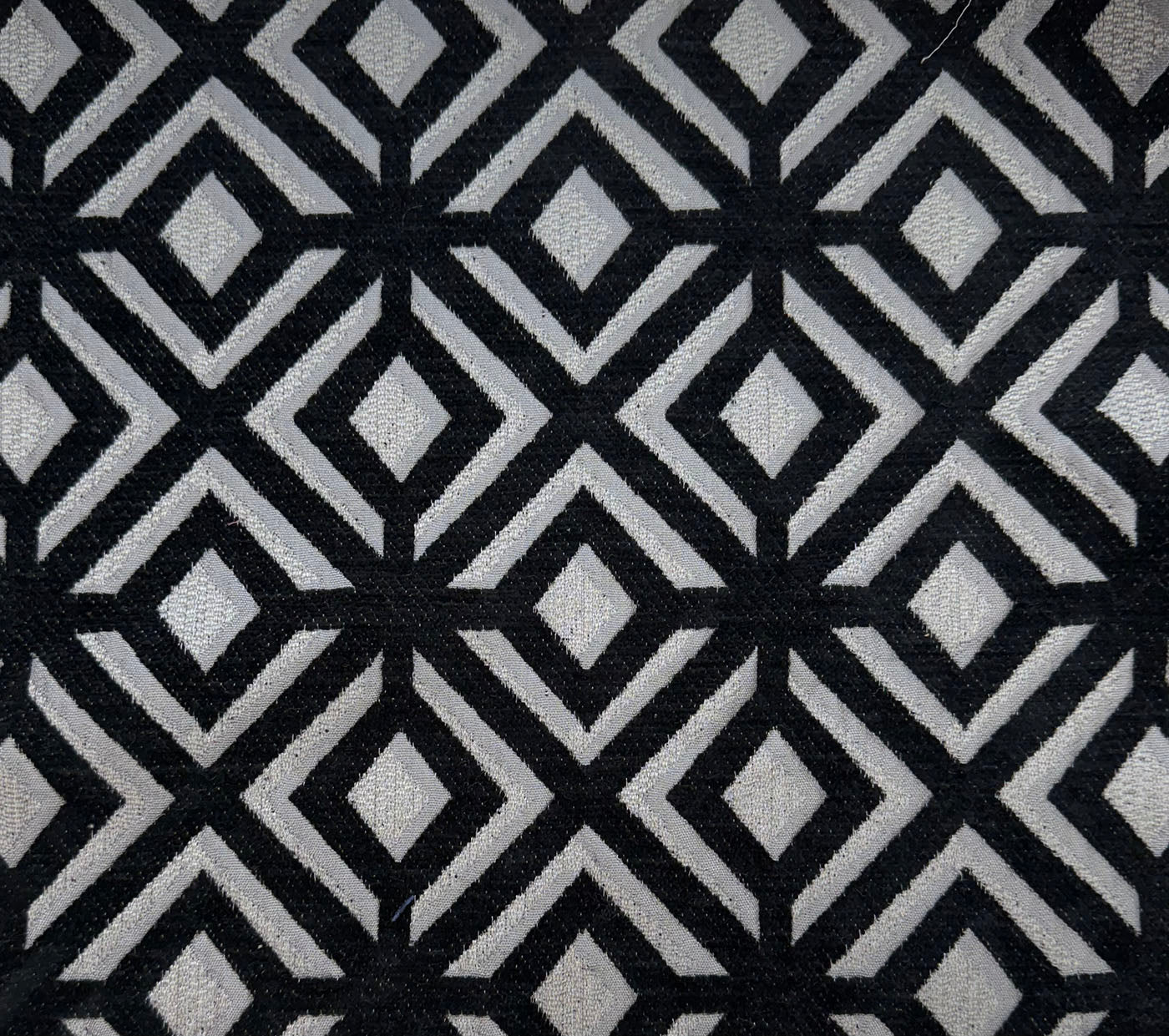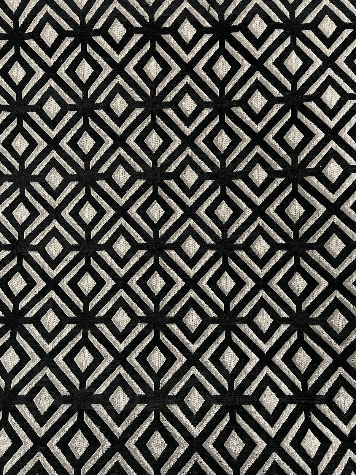 Mathis 93 in the color Jet, is a Black and White Chenille Diamond print, 57" Wide, 100% Polyester, Repeats: H=3.5" V=3.75" Double Rubs: 18,000