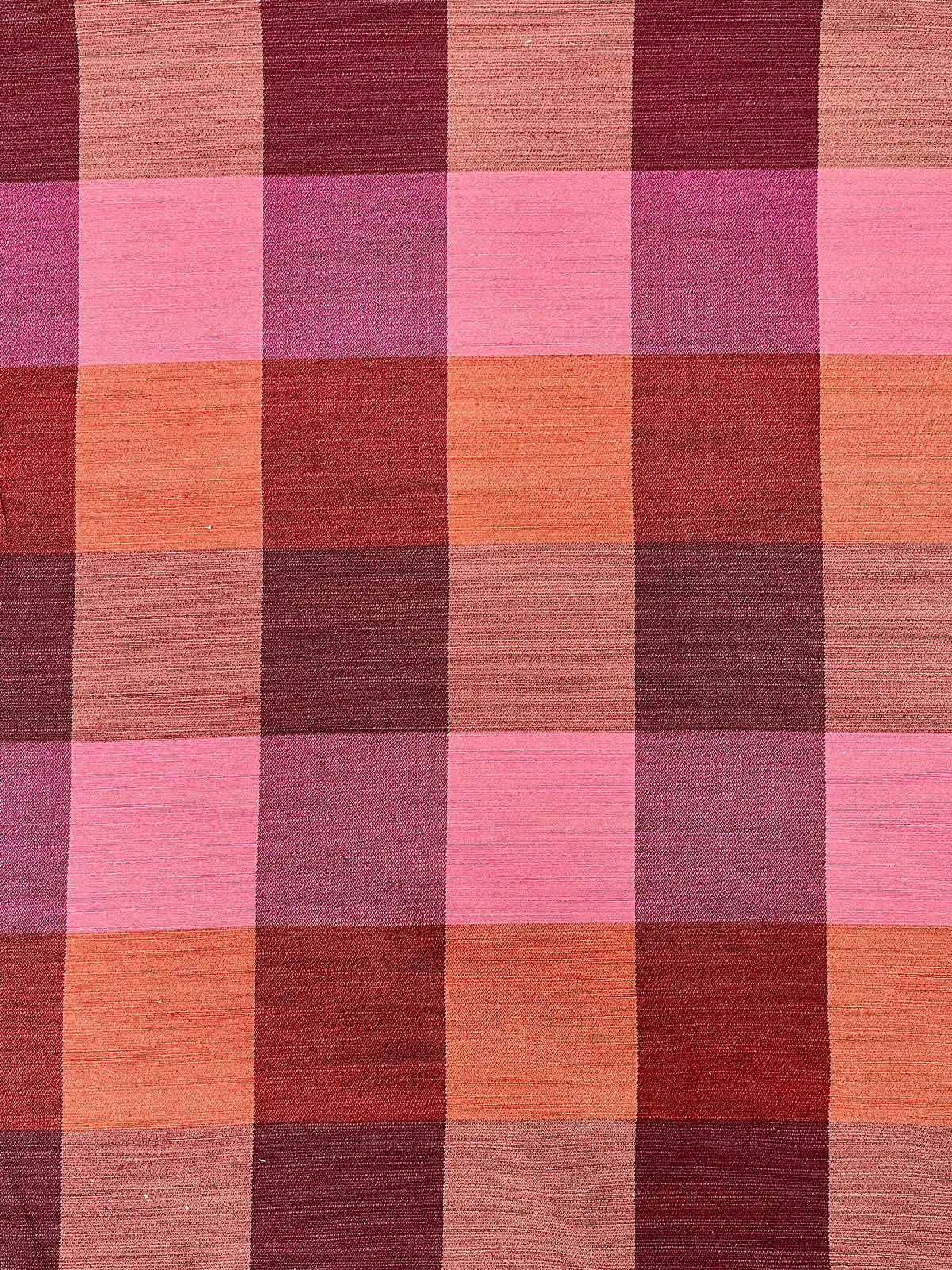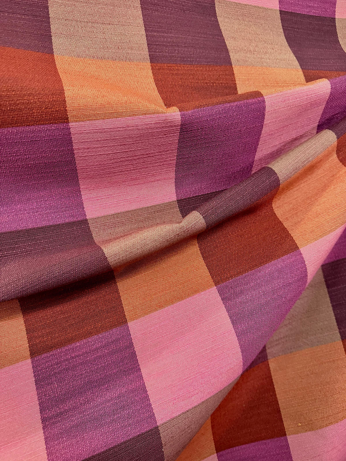 Berry Check is a slubbed polyester check in shades of Orange & Pink, 54" Wide, 100% Polyester, Repeats: H=6.25" V=9.5"