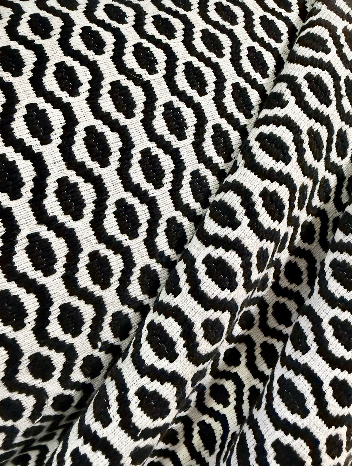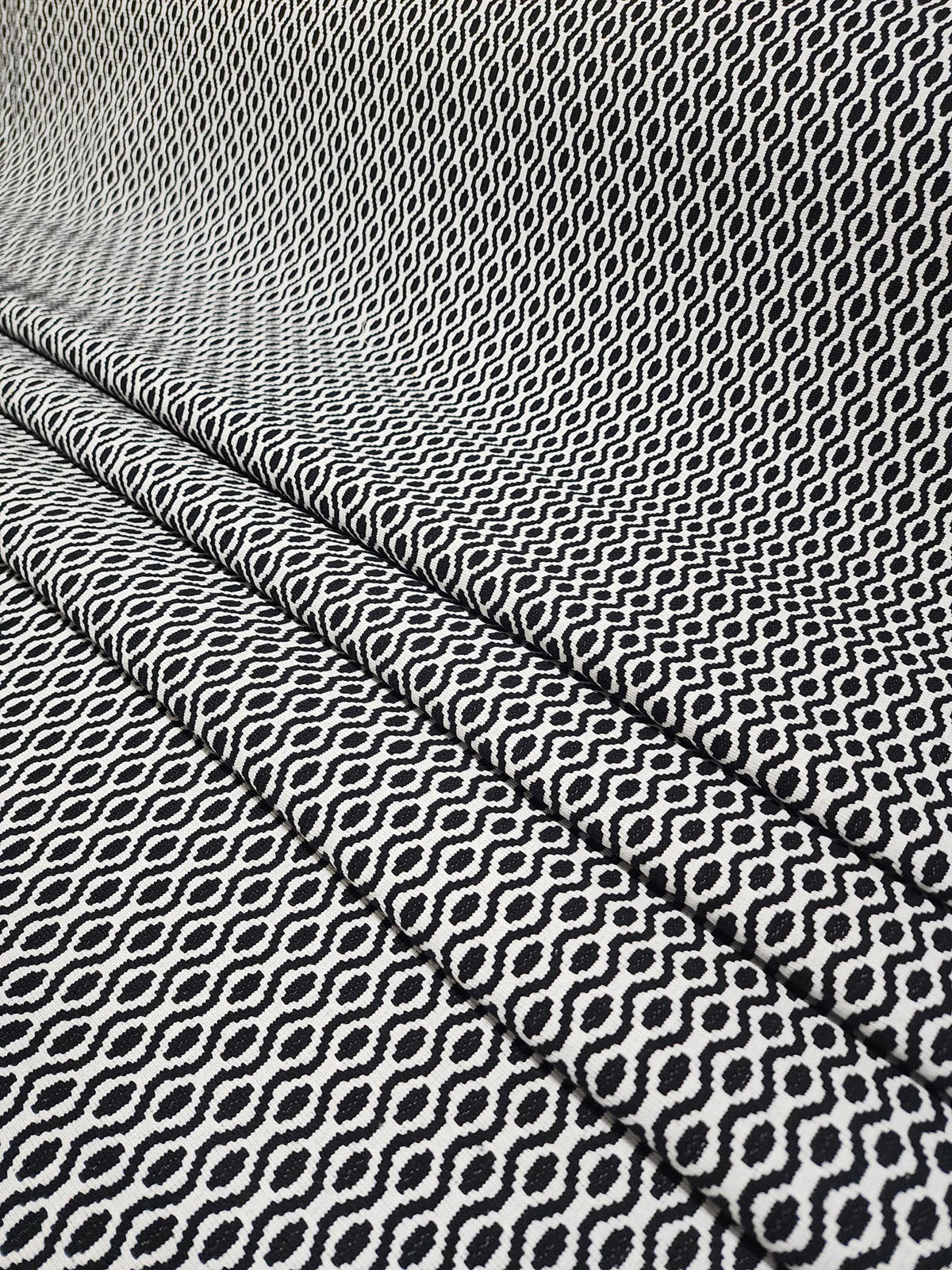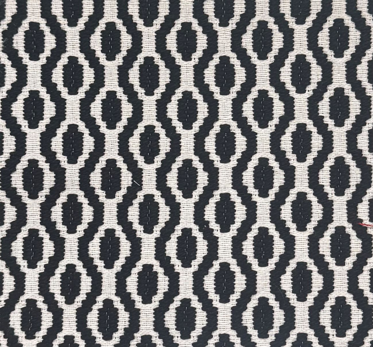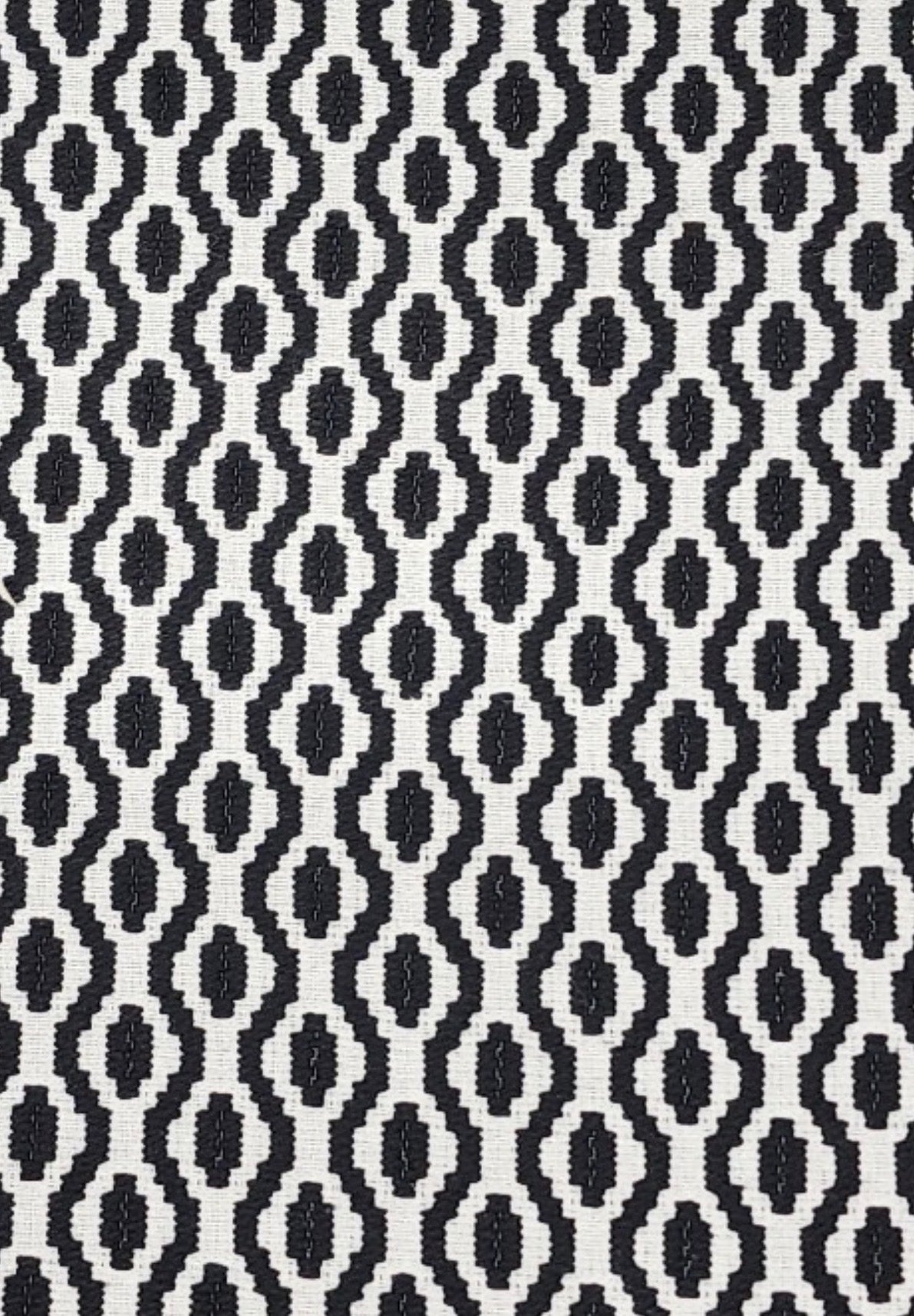 Bird's Eye in color 624 Pongo is a Black & White Woven Ogee Pattern fabric, 54" Wide, 20% Polyester 65% Cotton 15% Pre-combed Cotton, Repeats: H=1.2" V=1" Double Rubs: 15,000+