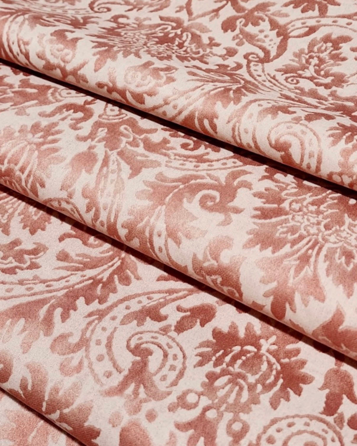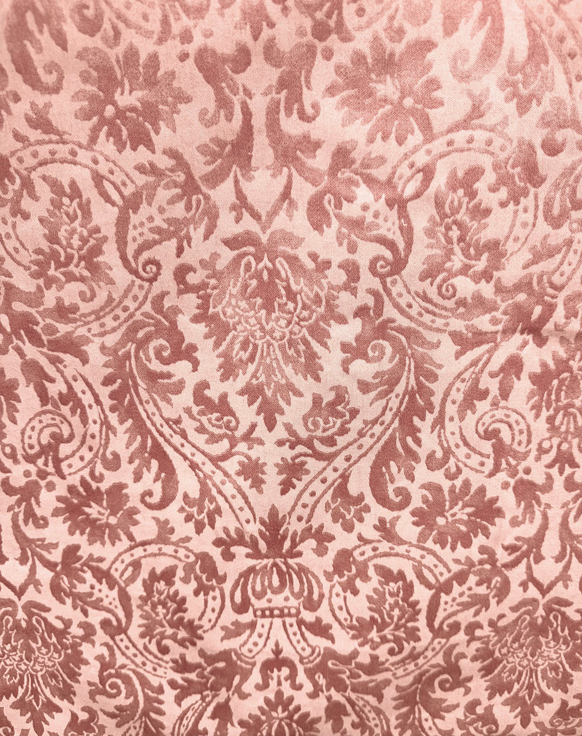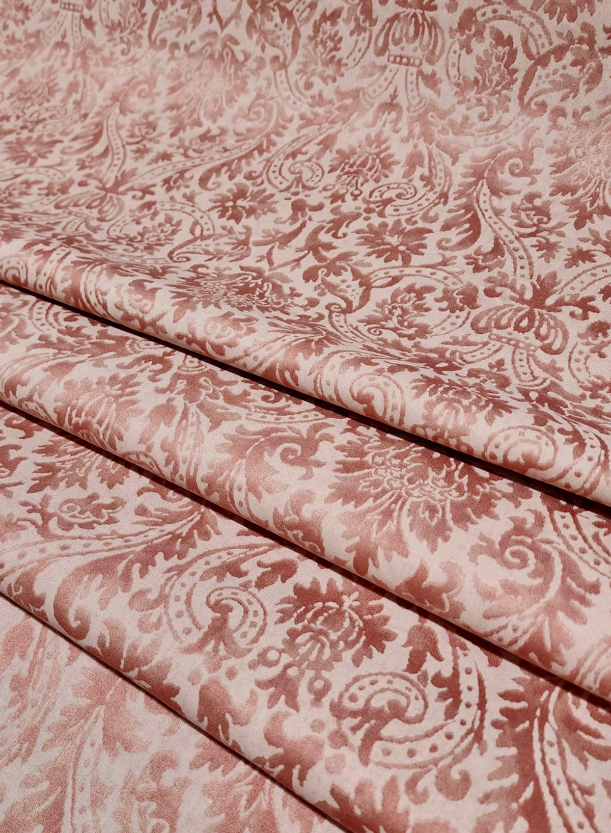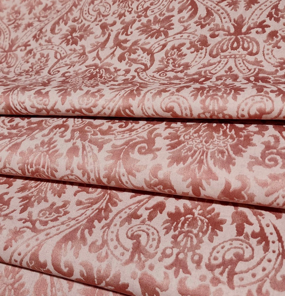Pink Damask is a Printed Damask fabric, 54" Wide, Content: Polyester, Repeats: H=13.5" V=18" Great for Drapery, Bedding or Pillows