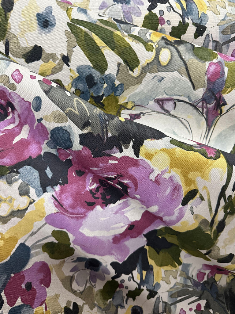 Lepore in Berry is an Abstract Floral, 54" Wide, 100% Cotton, Repeats: H=27" V=27" Double Rubs: 15,000