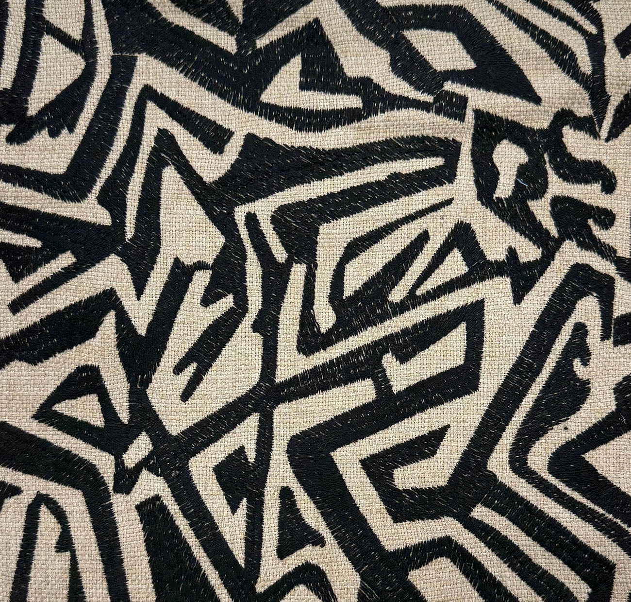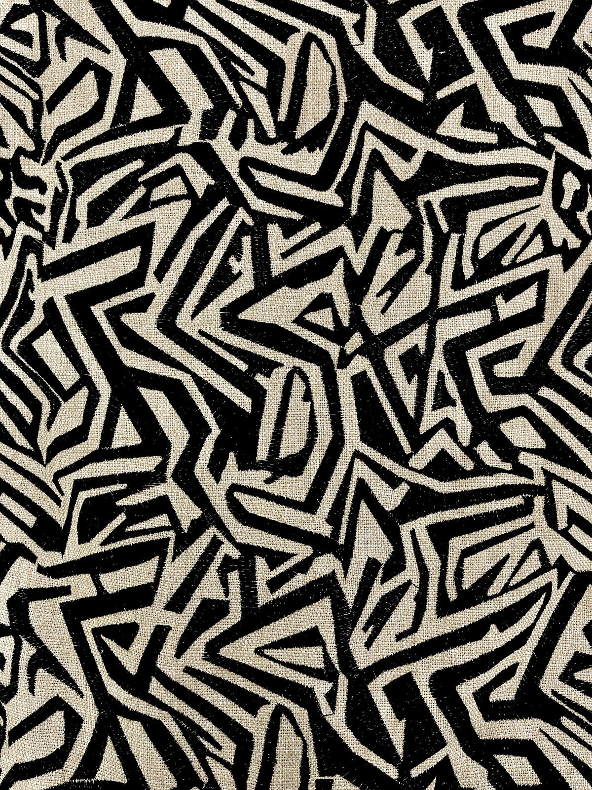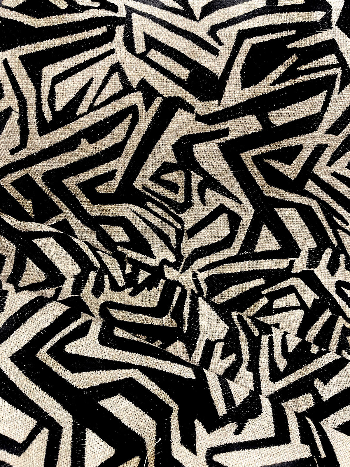 Kuba 936 in Black and Tan is an Embroidered Abstract design, 52" Wide, 100% Polyester, Repeats: H=17.5" V=18.25" Double Rubs: 57,000