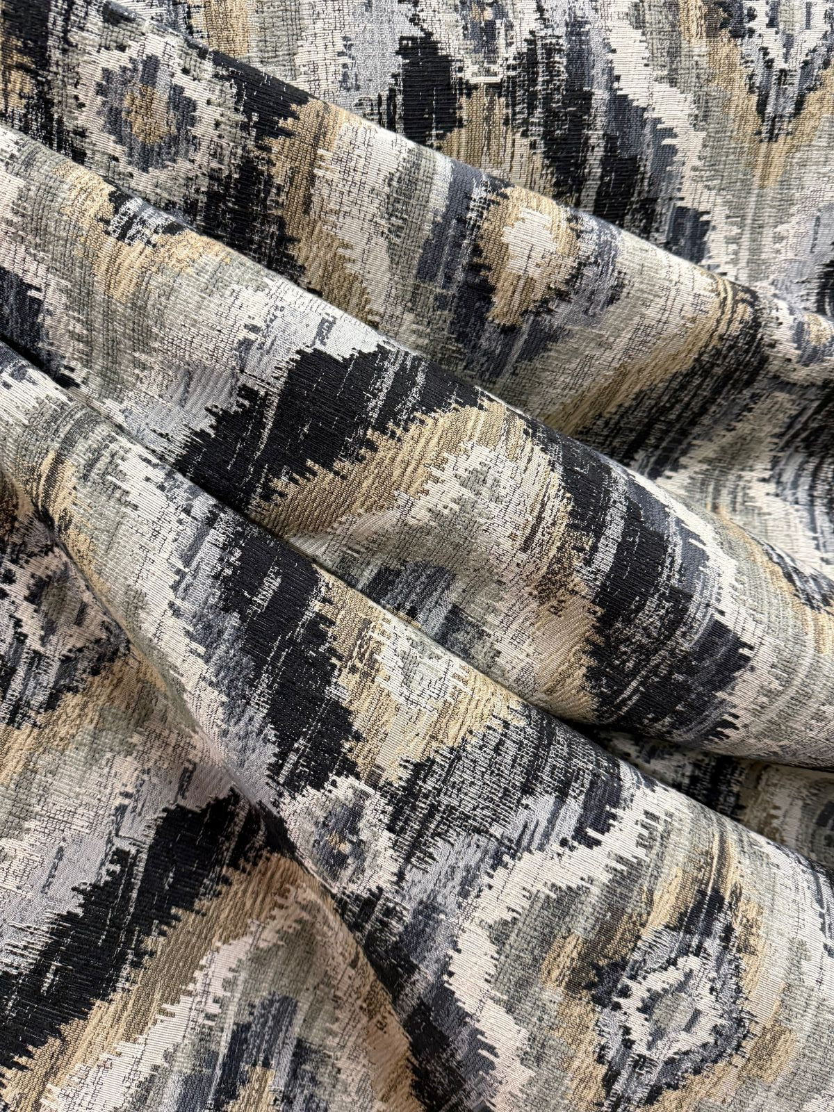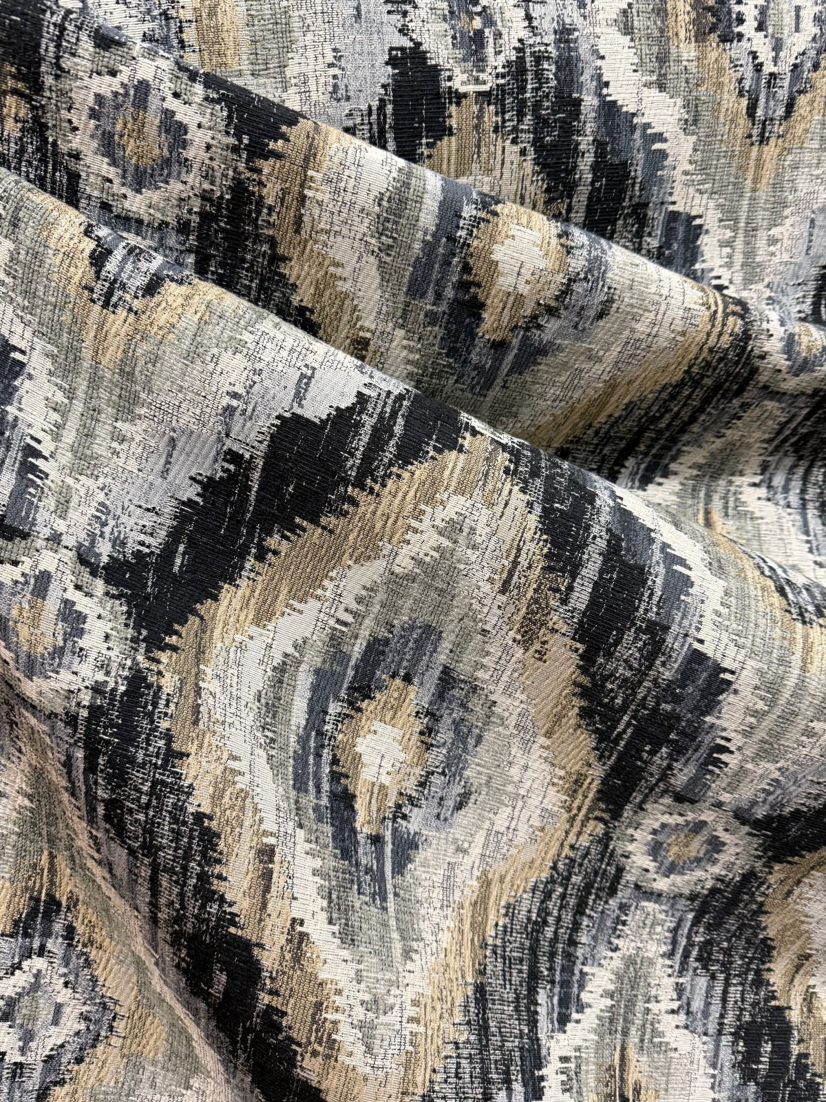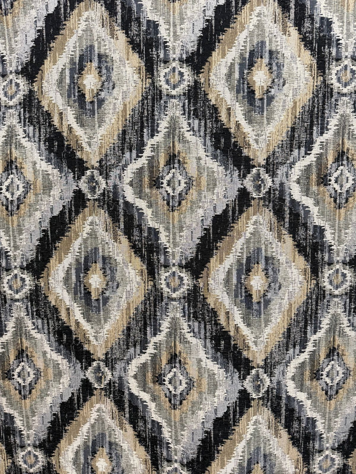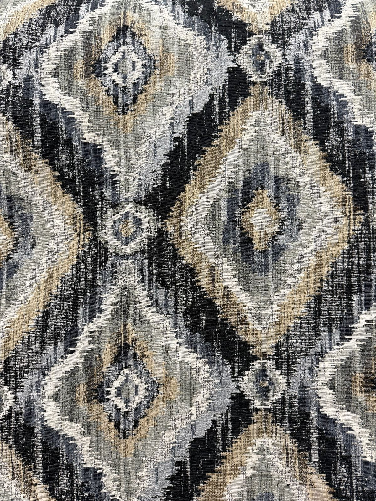 Brighton in color Sterling is a Chenille Ikat Diamond with hints of green, 54" Wide, 100% Polyester, Repeats: H=14" V=17" Double Rubs: exceeds 15,000
