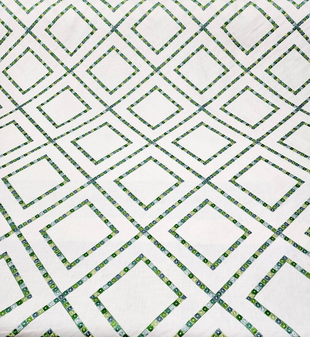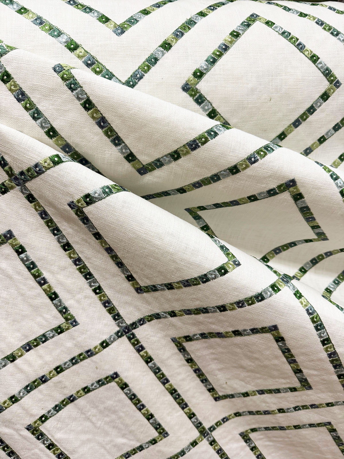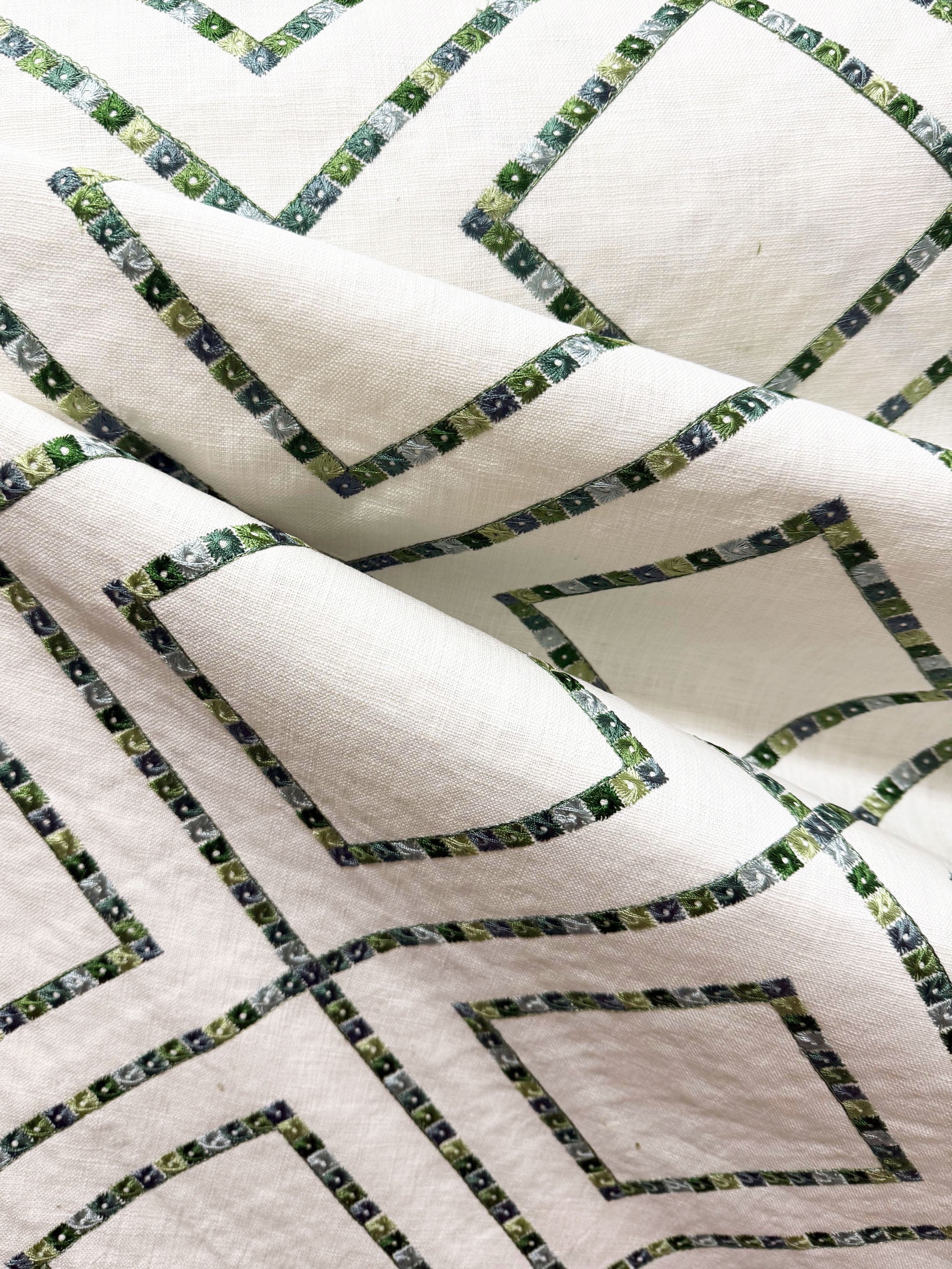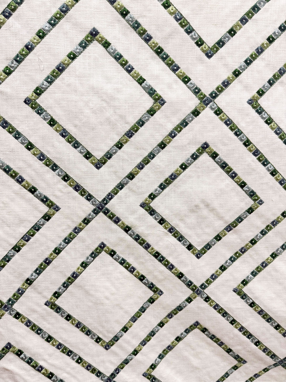 Beaded Lattice in the color Meadow is an Embroidered Beaded Lattice, 54" wide, 100% Cotton 100% Viscose Embroidery, Repeat: H=12.5" V=11.5" Double Rubs 51,000.
