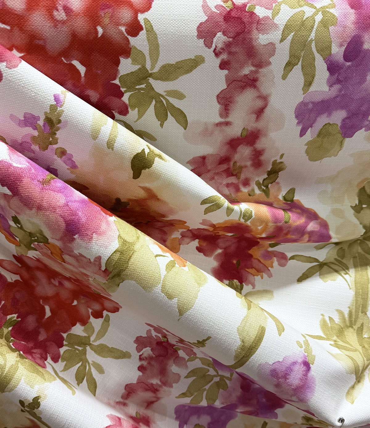 Snapdragon in the color Petal is a Floral, 54" wide, 100% Cotton Repeats: H=27.5" V=26" Double Rubs: 12,000