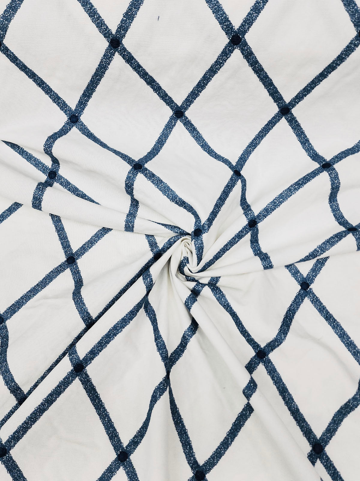Emb Diamond w/Dot, 52" Wide, 100% Cotton, Rayon Embroidery, Repeats: H=5.25" V=7.5" Double Rubs: 5,000