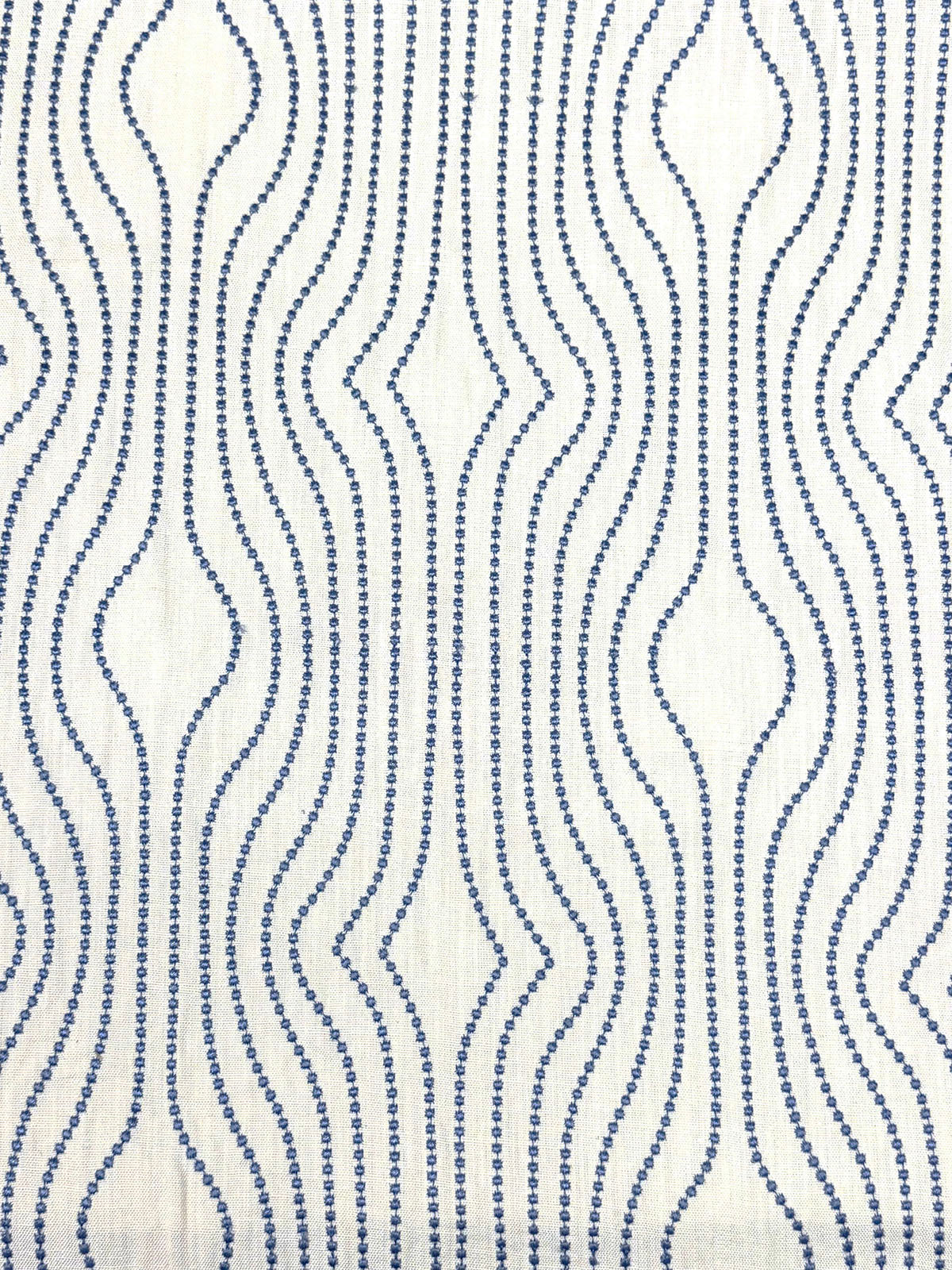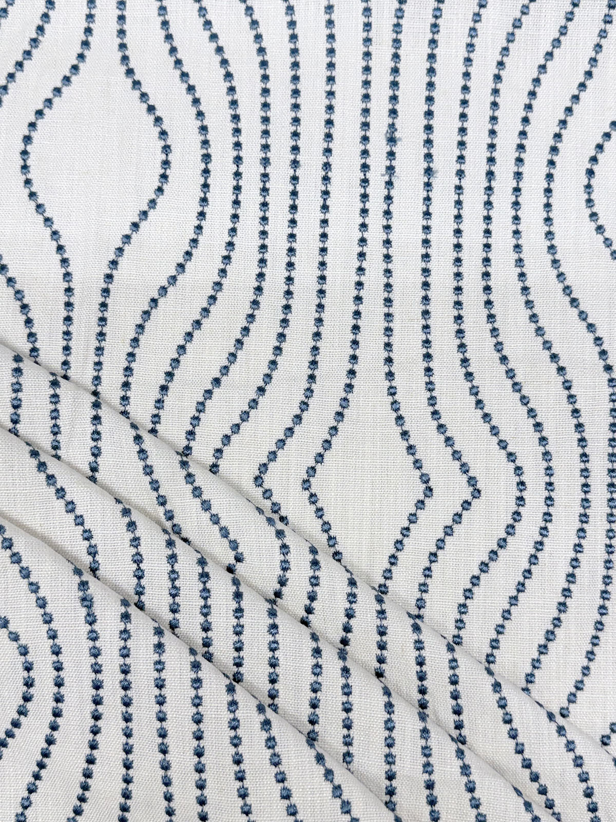 Pebble Wave in color Azure is a Embroidered Ogee Dots Pattern Fabric, 51" Wide, 70% Viscose 30% Linen, Emb-100% Polyester, Repeats: H=8.62" V=9.5"