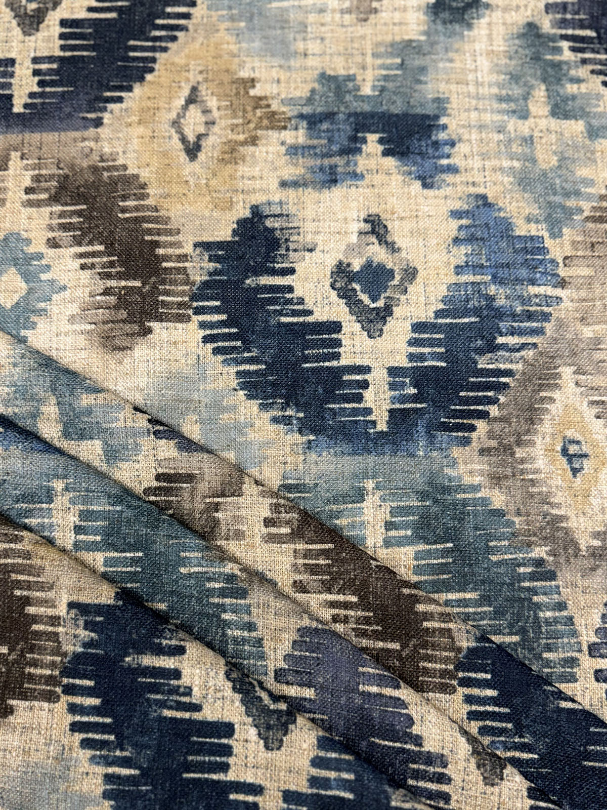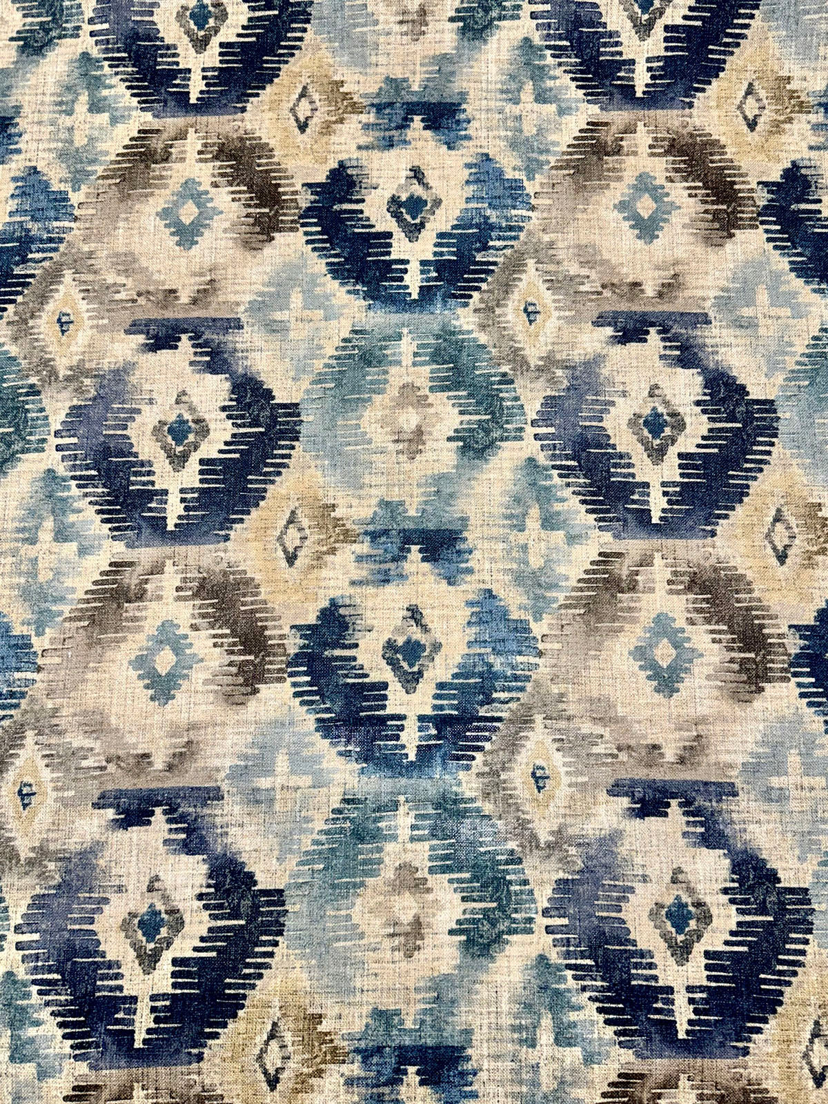 Amoret Superba in the color Cascade is a Southwestern Diamond. 54" wide, 100% Polyester, Repeats: H=13.5" V=13.5"" Double Rubs: Exceeds 15,000