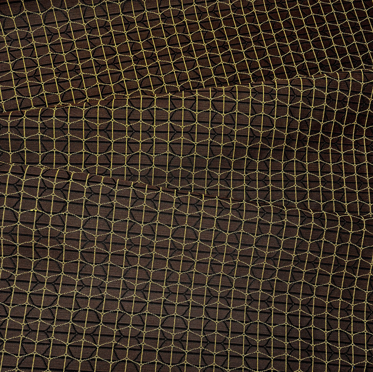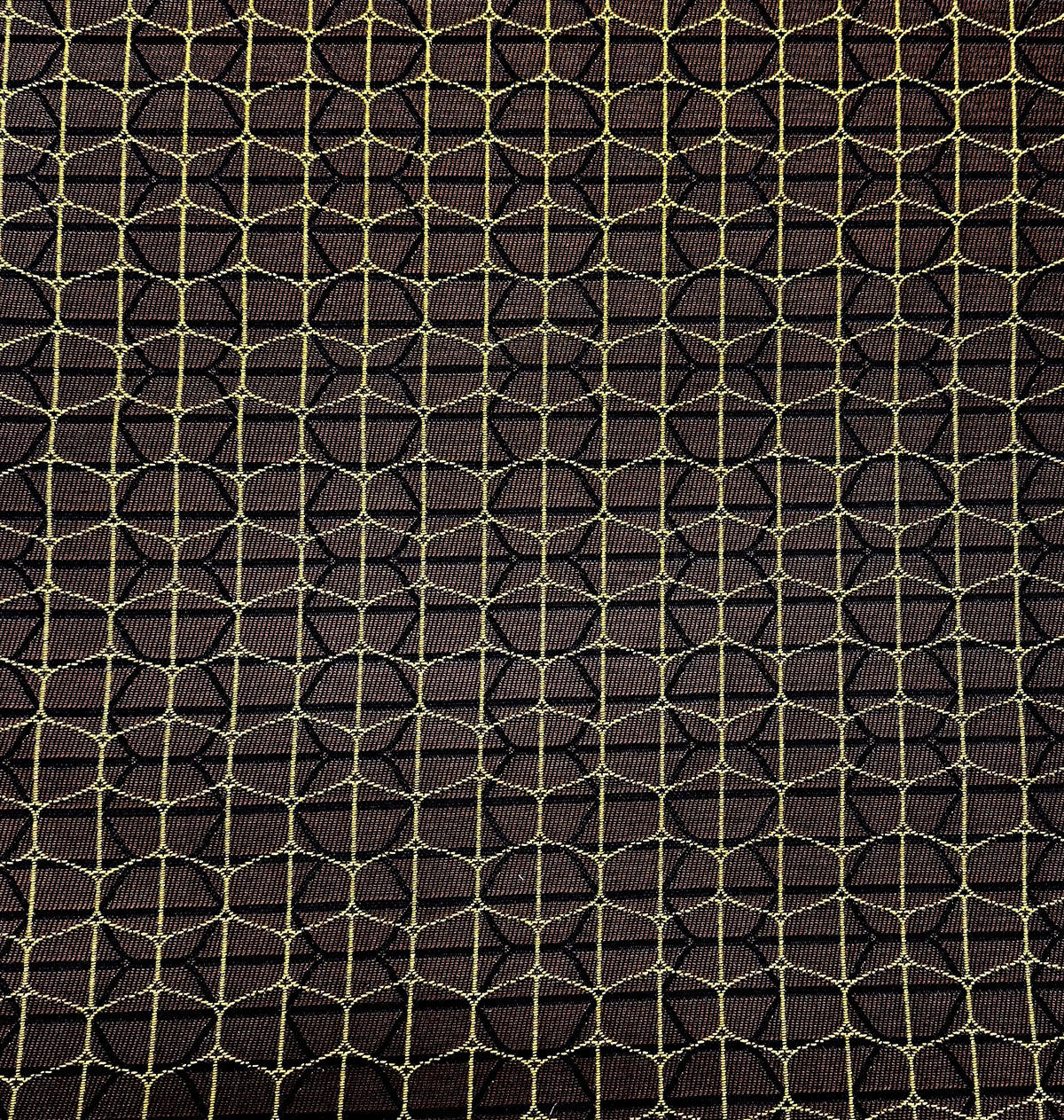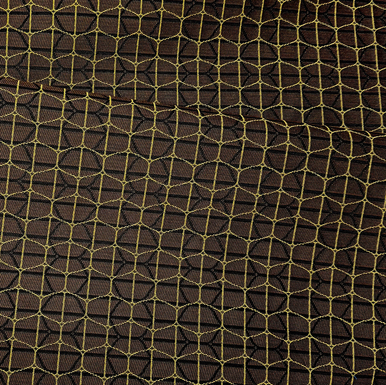 Brown Black & Gold Geometric fabric, 54" Wide, 40% Acrylic 36% Polyester, 24% Rayon, Repeats: H=4.75" V=5.25" Double Rubs: 50,000