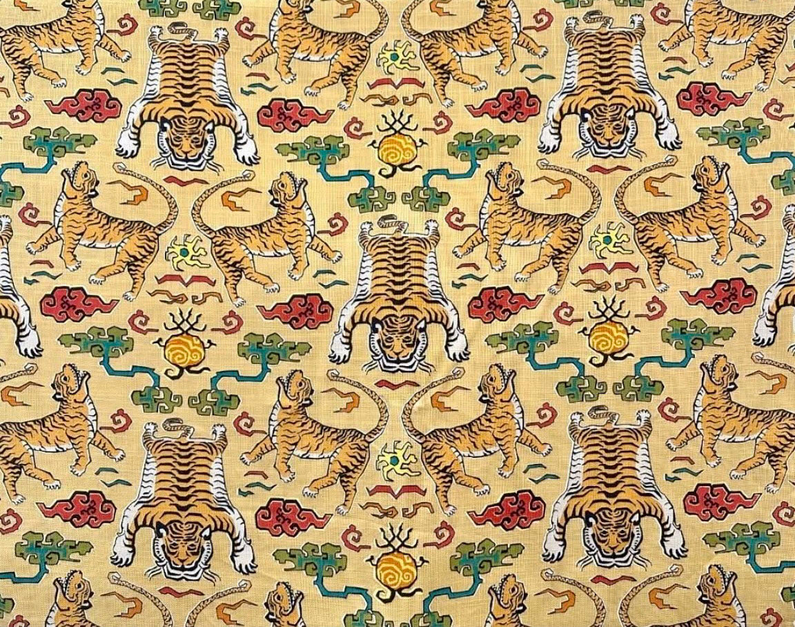 Tibetan Tiger Print,: 54.5" wide, 75% Cotton 25% Linen, Repeats: H=27.25" V=25.75", 27,000 Double Rubs
