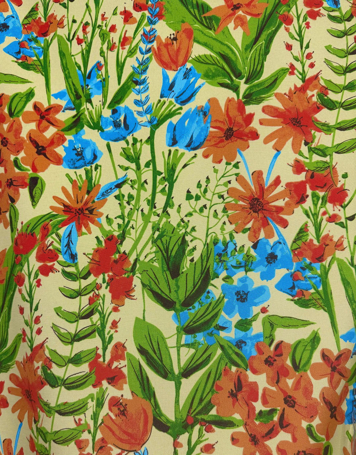 Gloria in the color Buttercup is an Outdoor Floral, 54" wide, 100% Spun Polyester, Repeats: H=27" V=25" Double Rubs: 30,000.