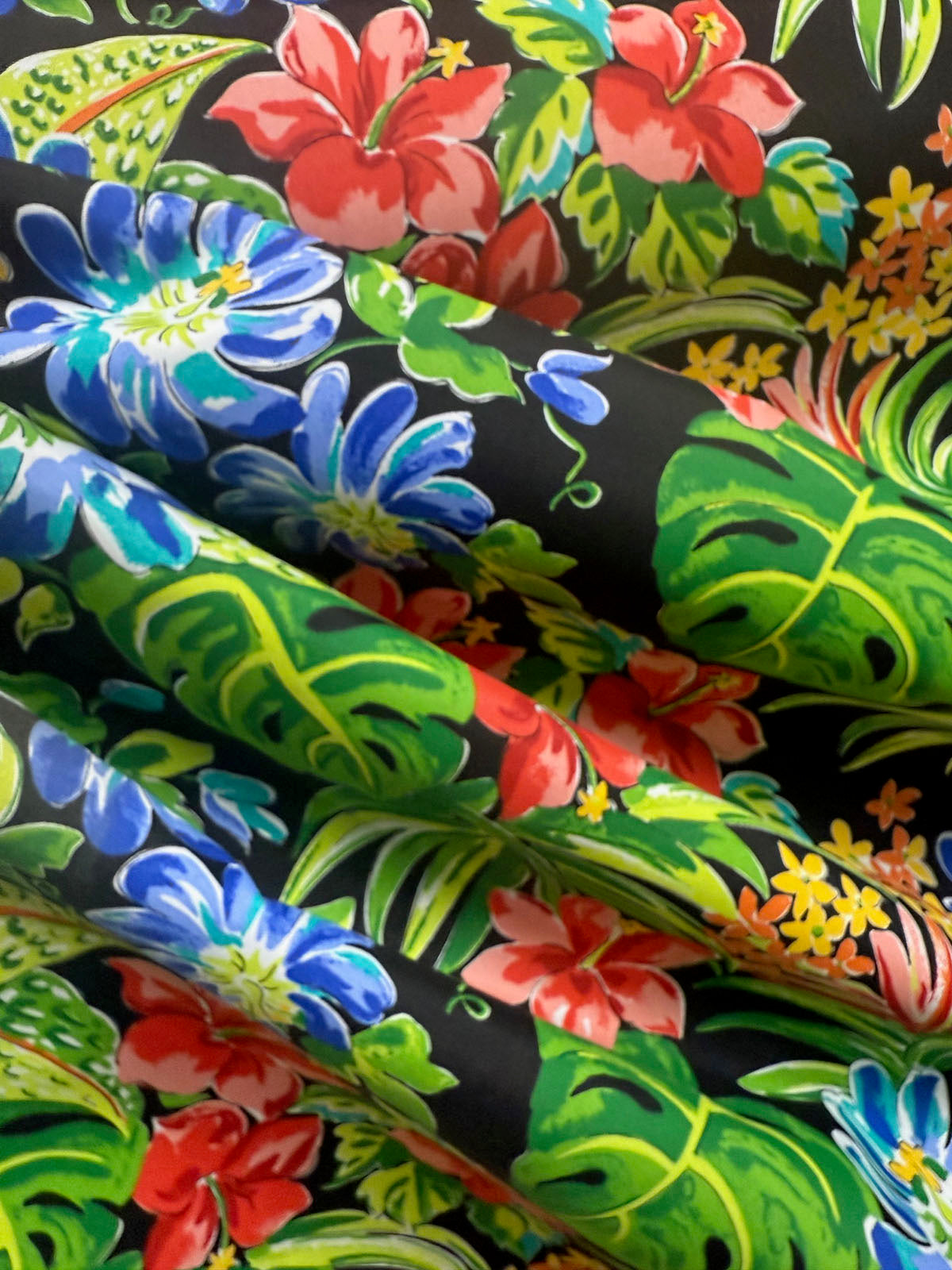 OD Belize in Color Black is a Multi color Tropical Floral, 60" Wide, 100% Spun Polyester, Repeats: H=36" V=25" Water Resistant