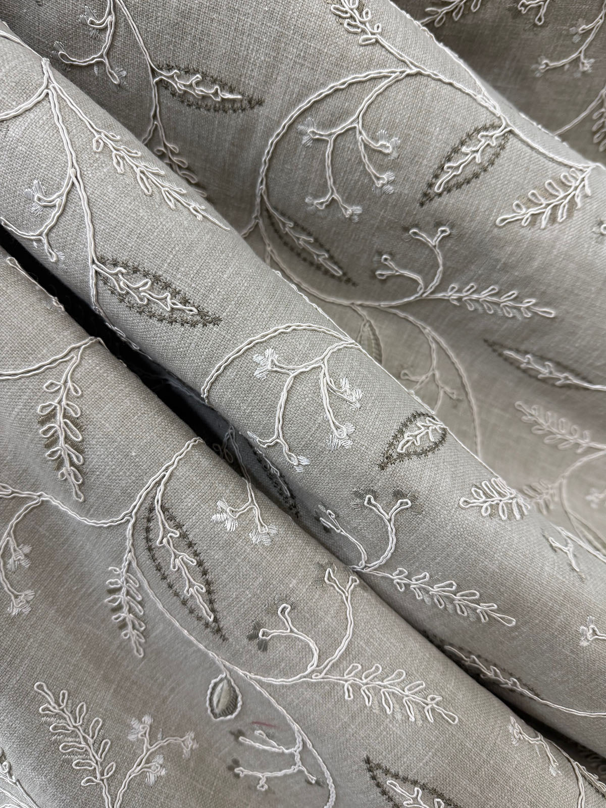 Prize Winner in the color Cashmere is an Embroidered Floral, 54" Wide, 52% Cotton 48% Polyester, Repeats: H=10.5" V=9.25" Double Rubs: 15,000