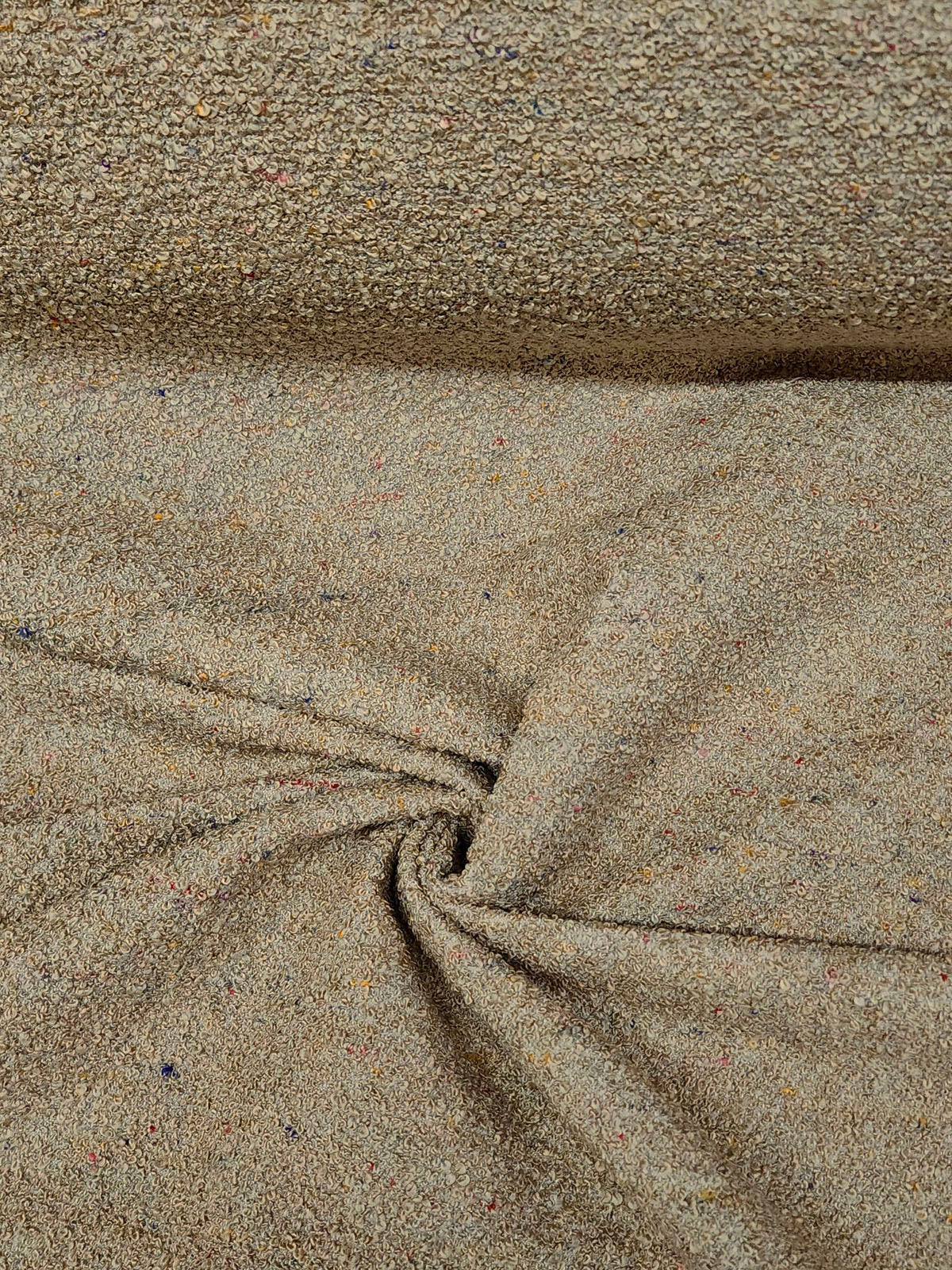 Fisher in color Confetti is a Boucle with Multi Color Specks, 54" wide 53% Acrylic 42% Cotton 5% Poly, Repeat: H=0" V=0" Double Rubs: 100,000