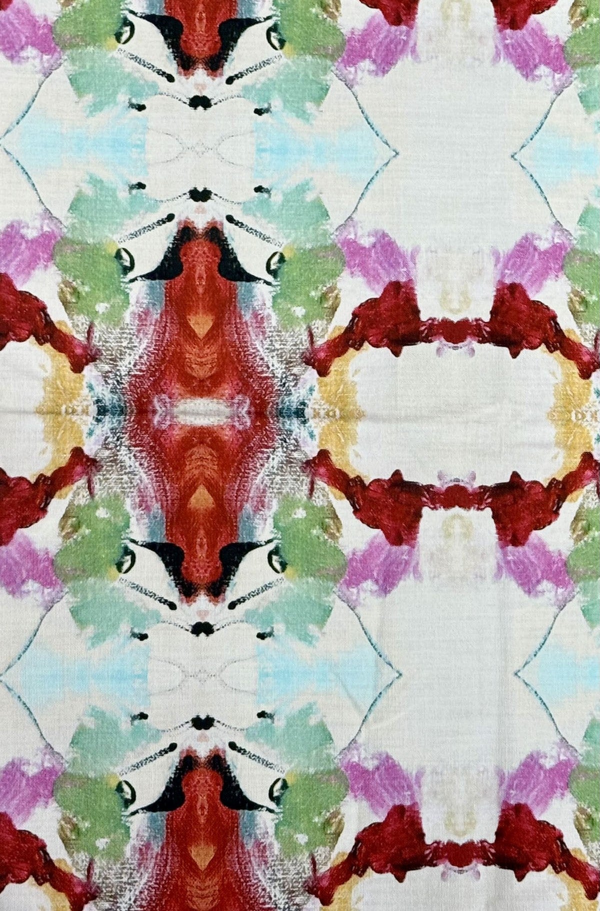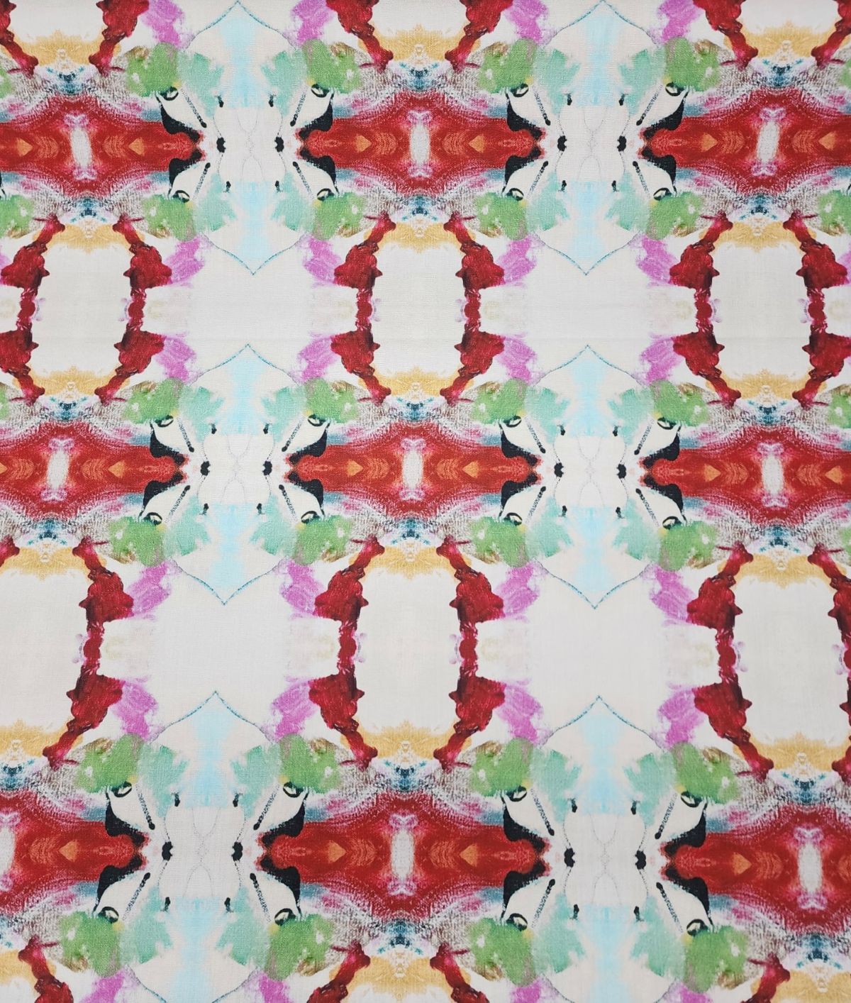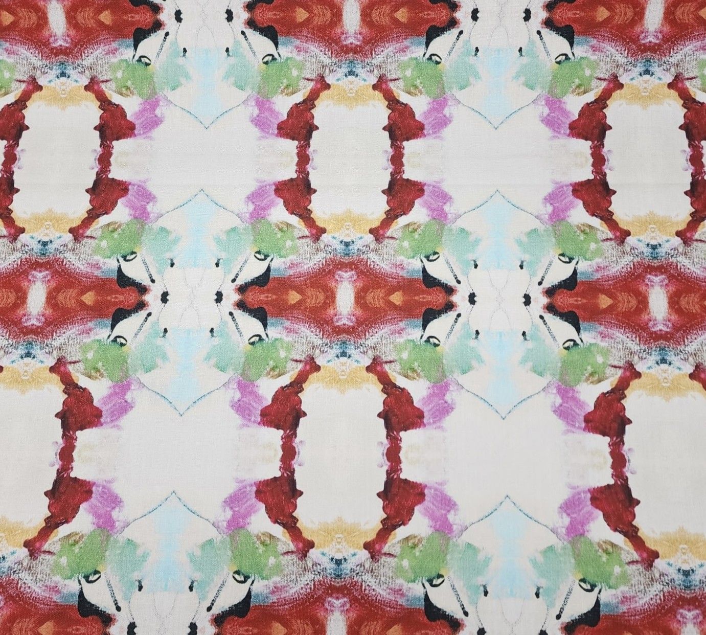 Greta in color Raspberry is a Abstract Kaleidoscope fabric, 54" wide 100% Cotton, Repeat: H=7" V=6.5" Double Rubs: 10,000