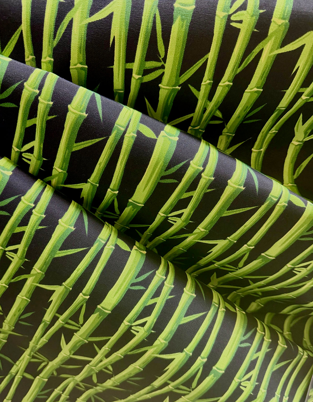 Bamboo in the color Black is a Terrasol OD Botanical, 54" Wide, 100% Spun Polyester, Repeats: H=6" V=12" Double Rubs: 15,000 Light Fastness: 1,000 Hours