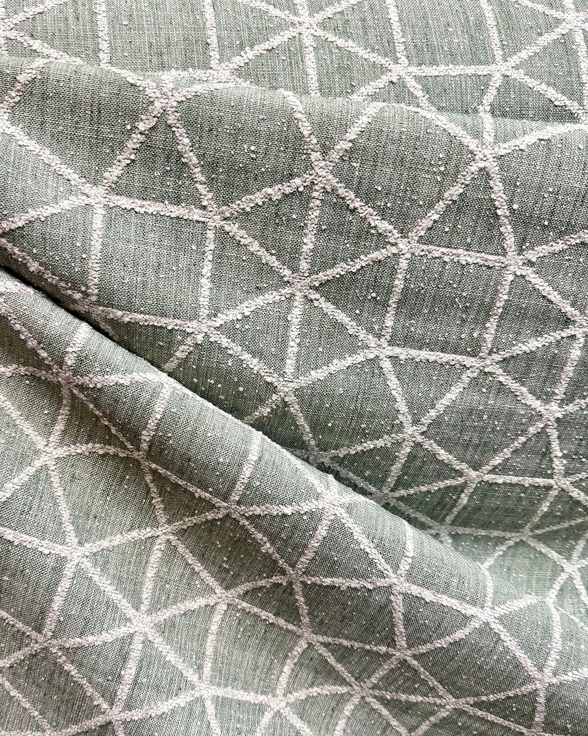 Casino in the color Leaf is a Seagreen Woven Spiderweb Geometric, 54" Wide, Polyester, Repeats: H=7" V=12" Double Rubs: 15,000 +