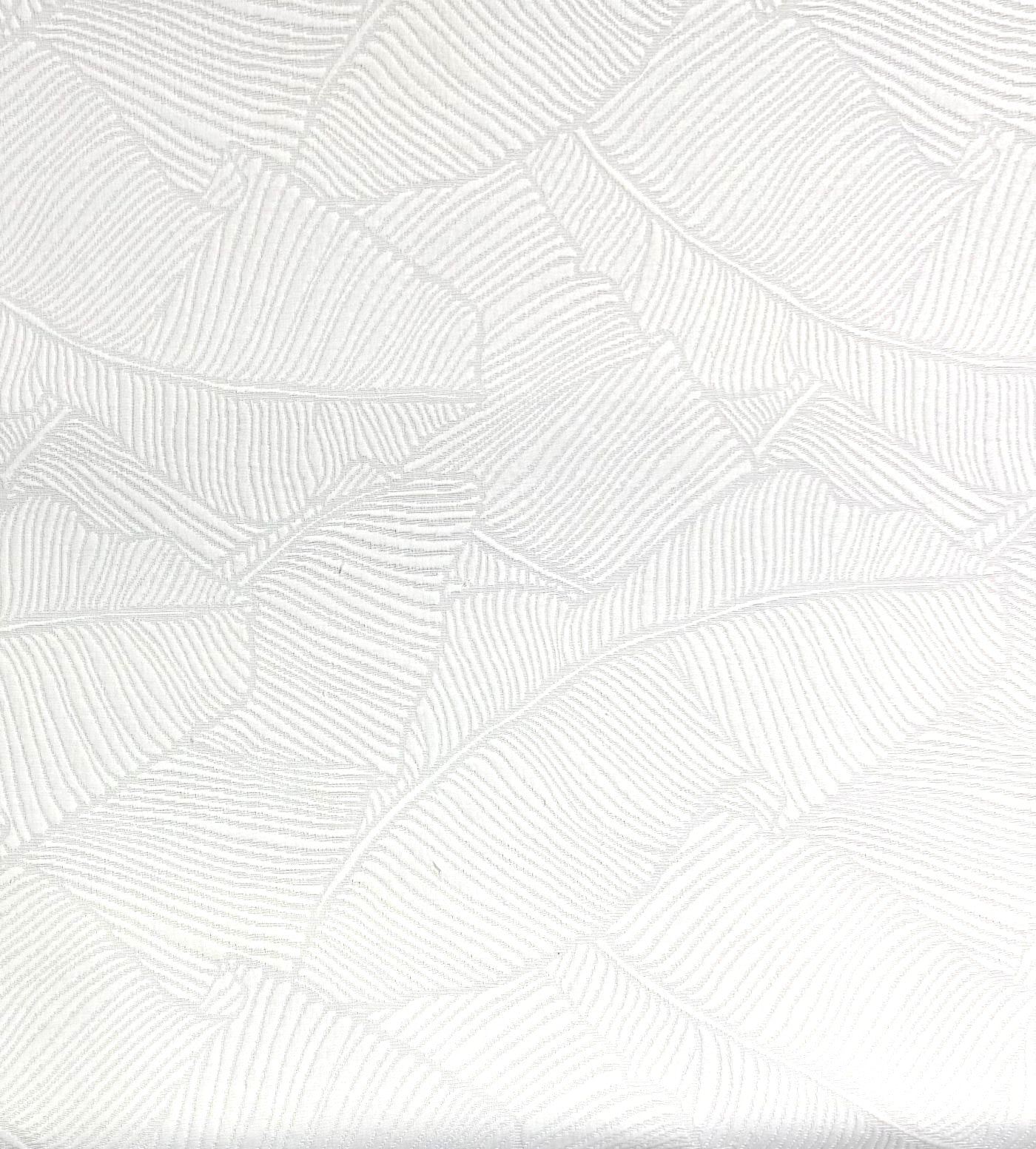 Palmetto in color Cloud is a Tropical Leaf Matelasse Fabric, 54" Wide, 30% Polyester, 70% Cotton, Repeats: H=14.75" V=15.7" Double Rubs: 21,000