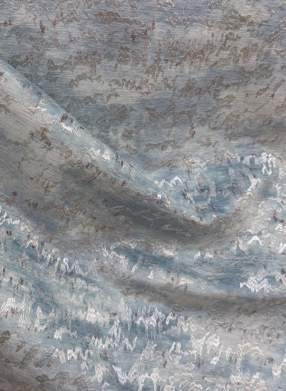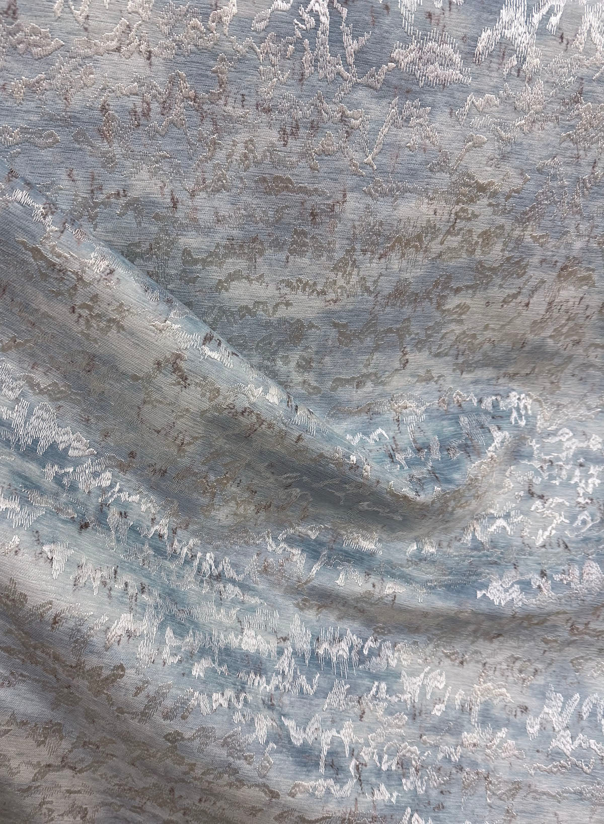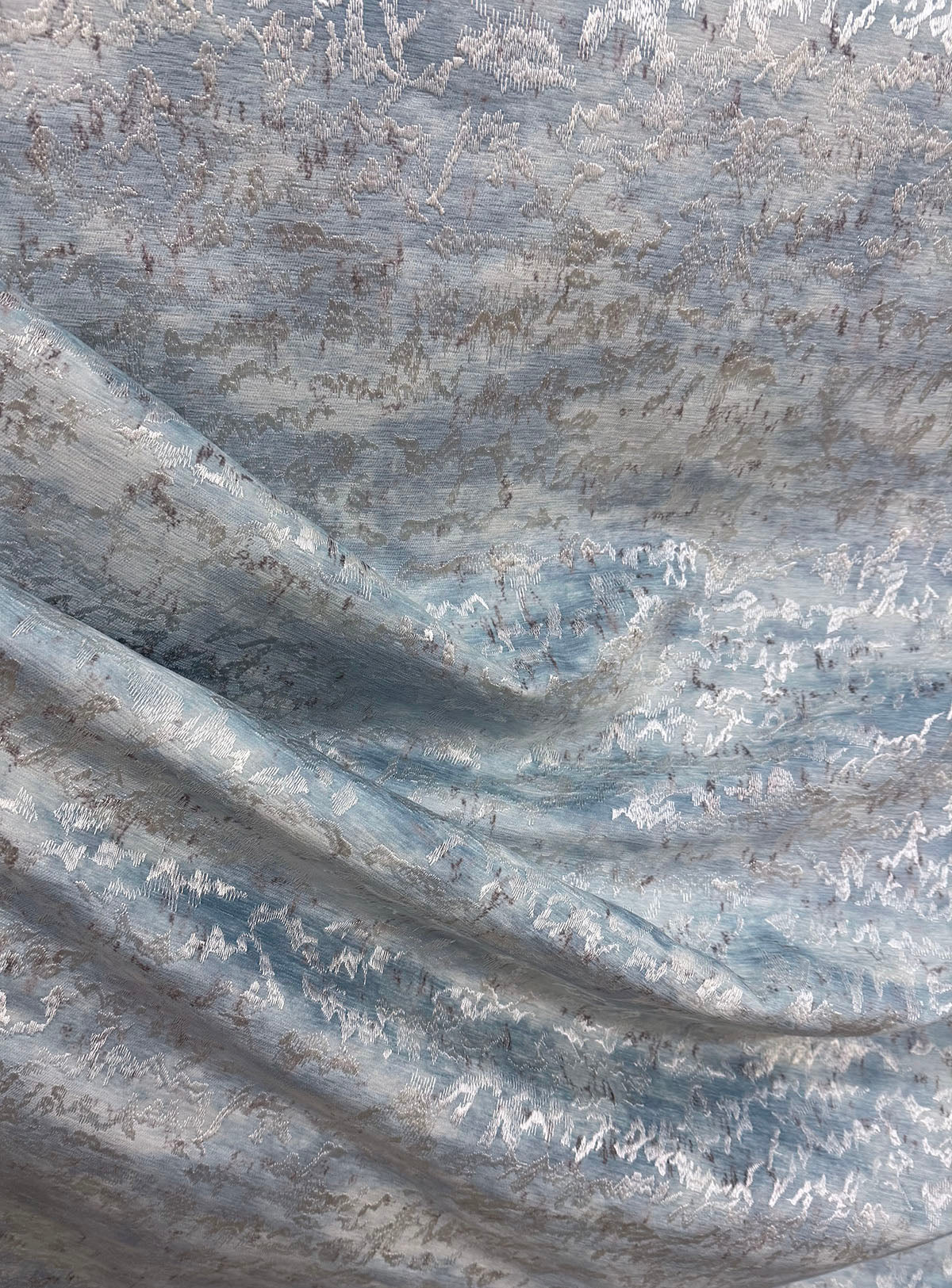 K_Nebula in the color Mineral is a Steel Blue Embroidered Velvet Cloud print, 54" Wide, 96% Polyester 4% Rayon, Repeats: H=18" V=15.25" Double Rubs: 40,000