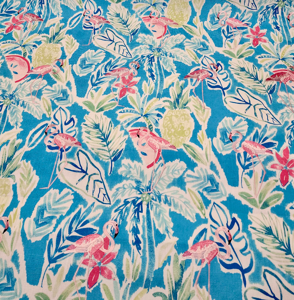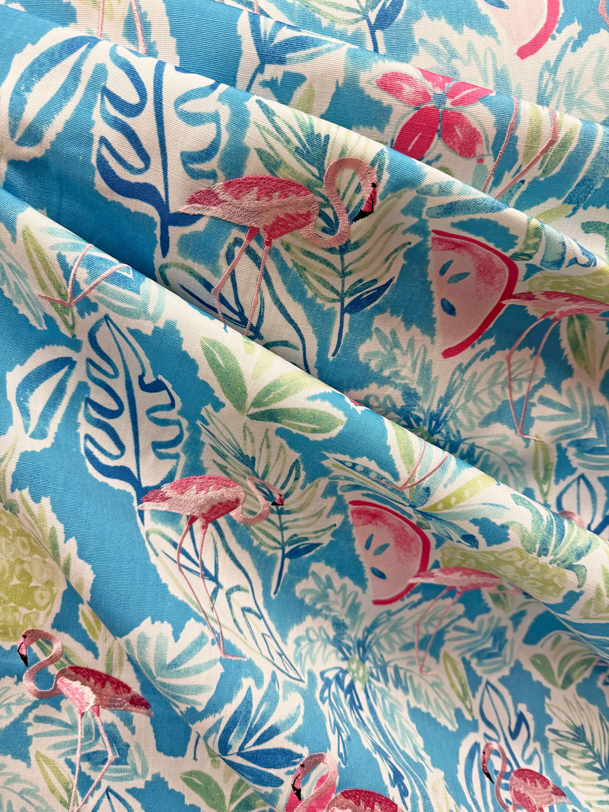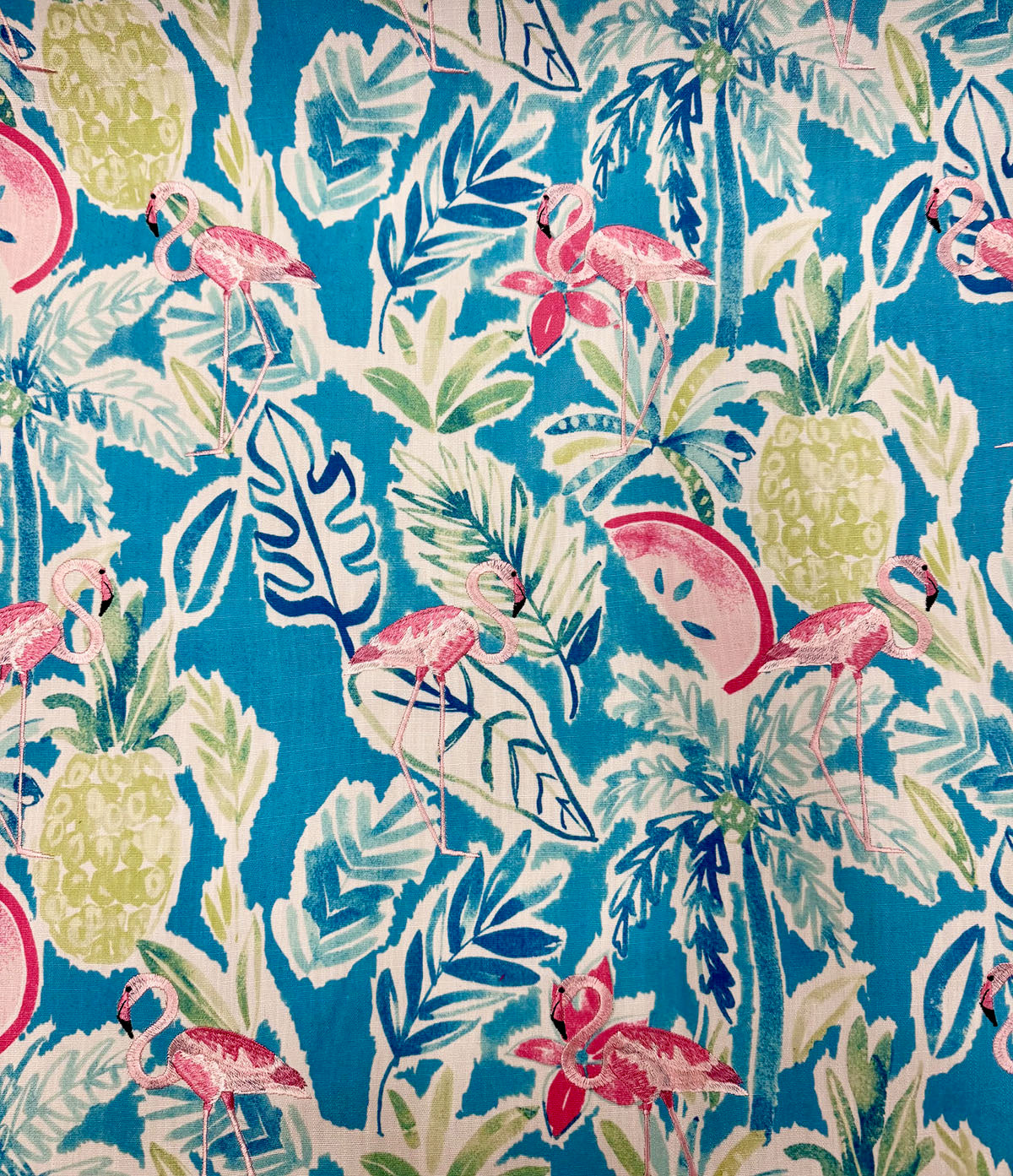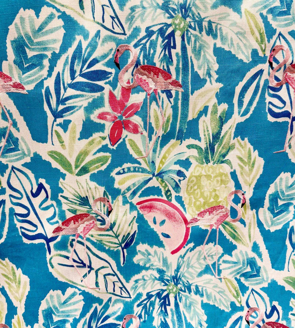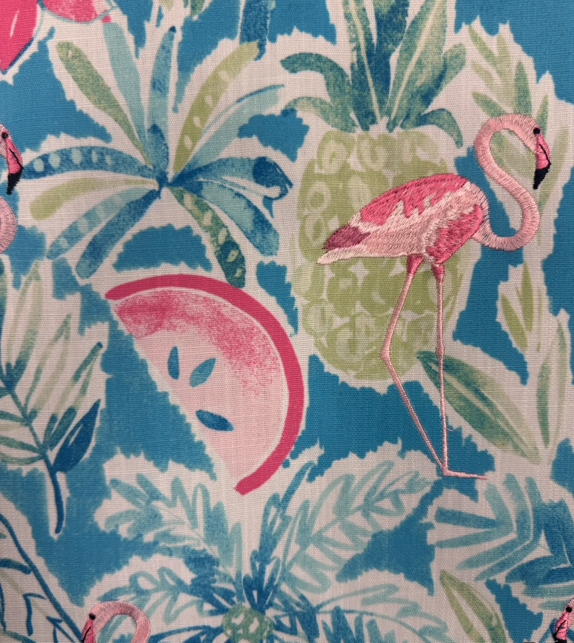 Pretty in Pink is in color 753 Cotton Candy and is Emboridered Flamingos, 55" wide, 100% Polyester, Repeats: H=.28" V=14.75" Double Rubs: 48,000