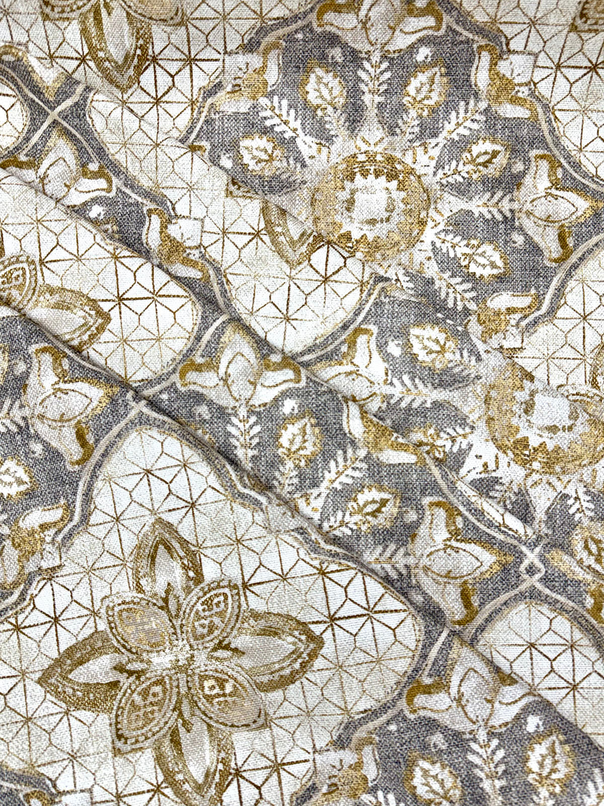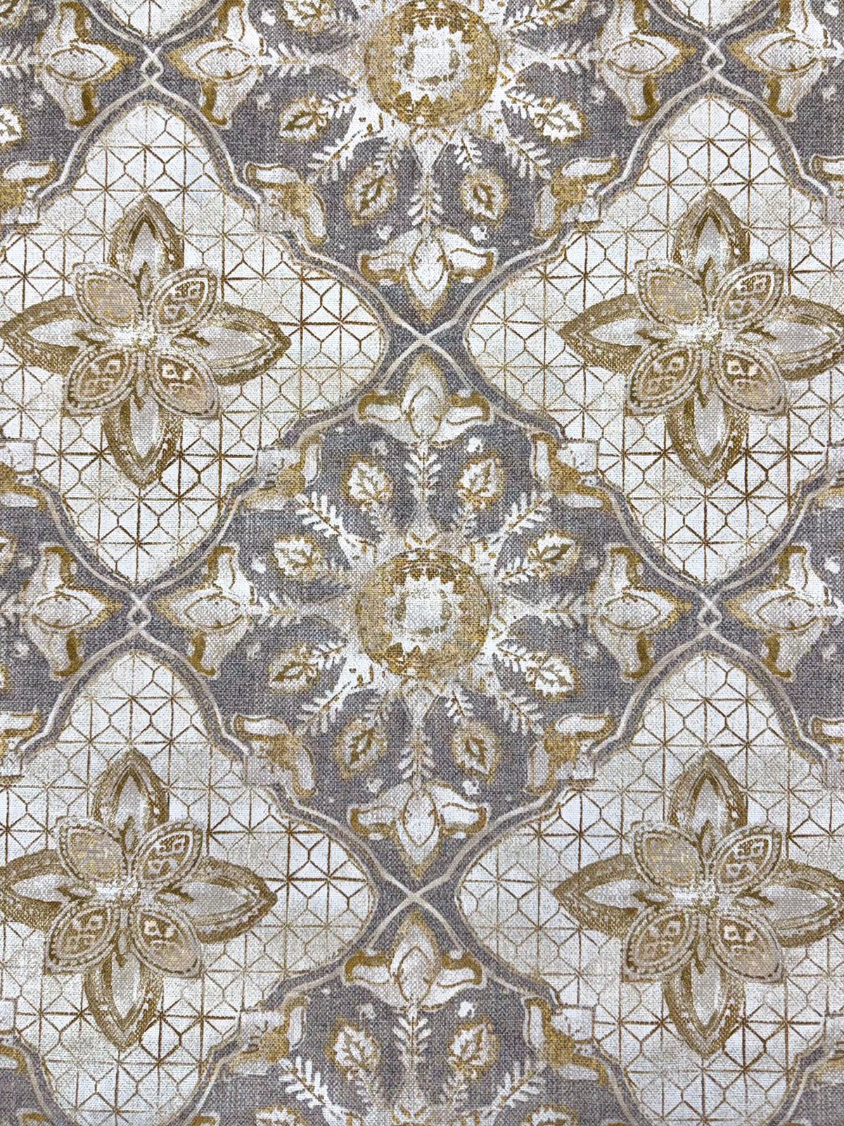 Chalette in color Cognac is Printed Floral and Diamond fabric, 54" Wide, 100% Cotton, Repeats: H=13" V=13" Double Rubs: 15,000