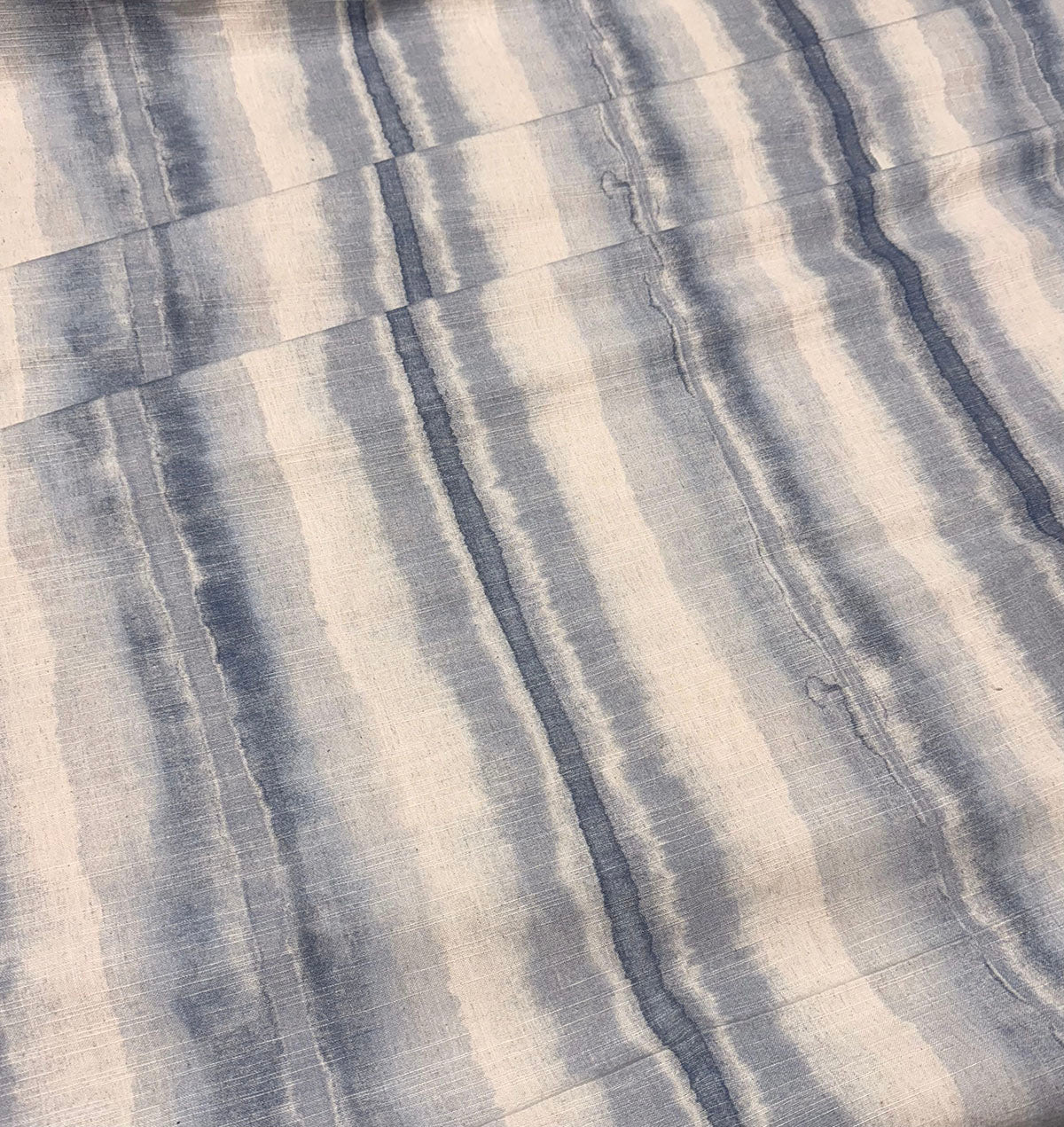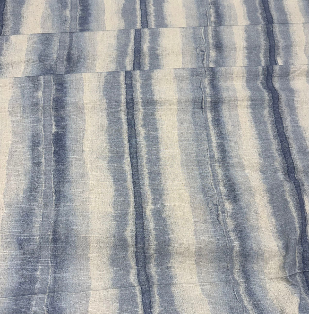 Desertwinds in the color Chambray is an UTR Ikat Stripe, 39% Rayon 17% Linen 44% Cotton, Repeat: H=27" V=25.25" Double Rubs: 51,000
