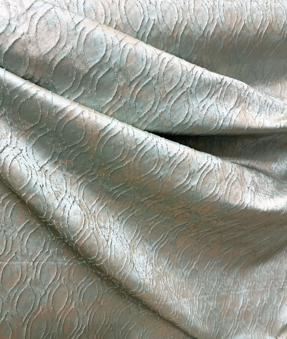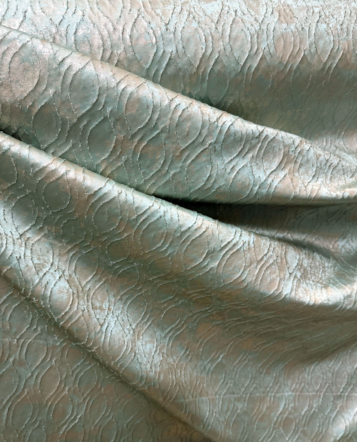 Dominique in the color Patina is a Metallic Marquis Jacquard, 54" wide, 100% Polyester, Repeat: H=9.3" V=7" Double Rubs 31,000.