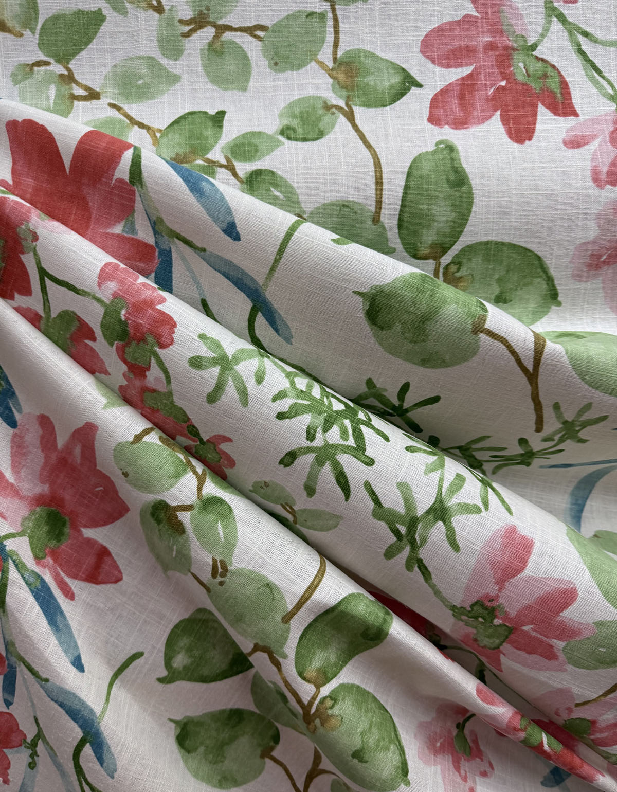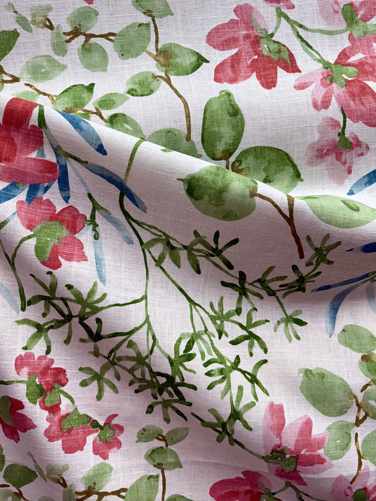 Gazebo in color Coral is a Botanical, 54" Wide, 55% Linen, 45% rayon, Repeat: H=27" V=27" , 15,000 Double Rubs