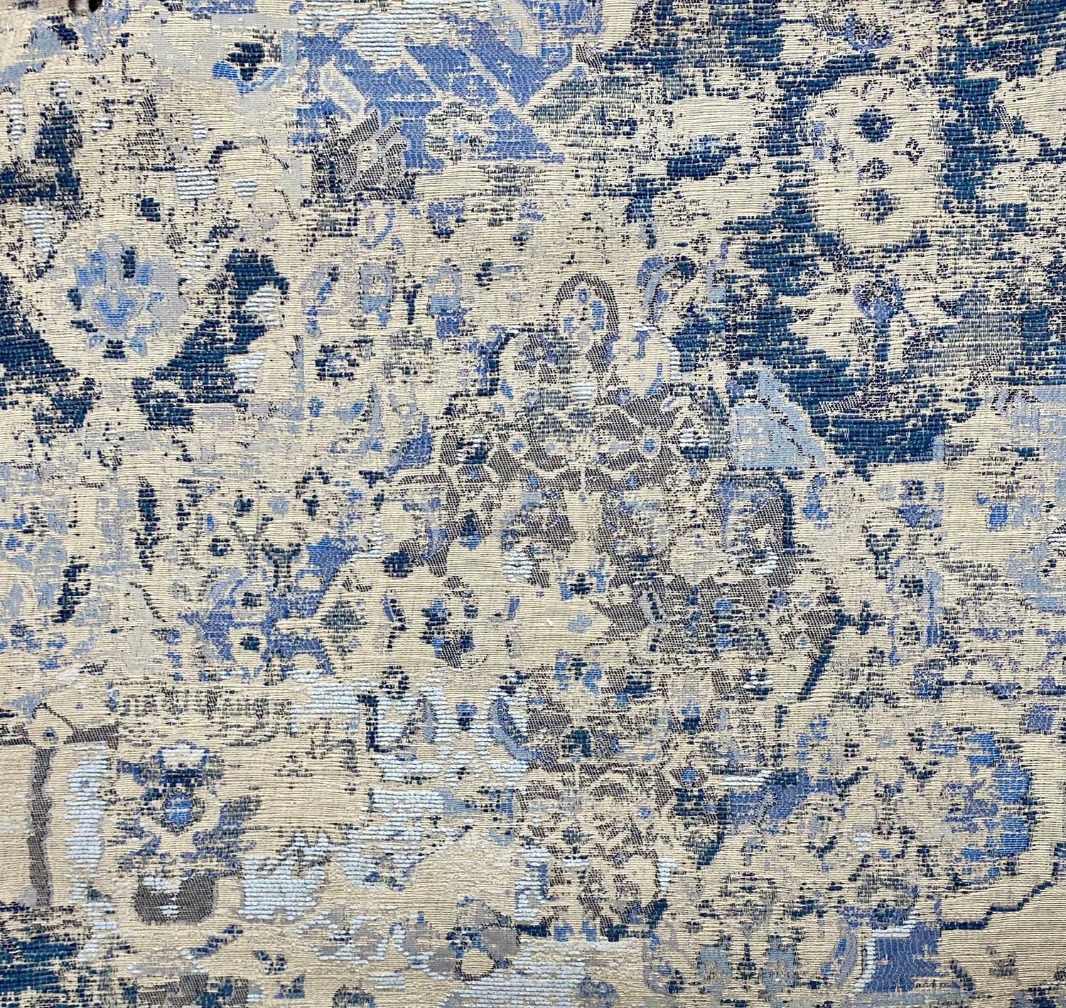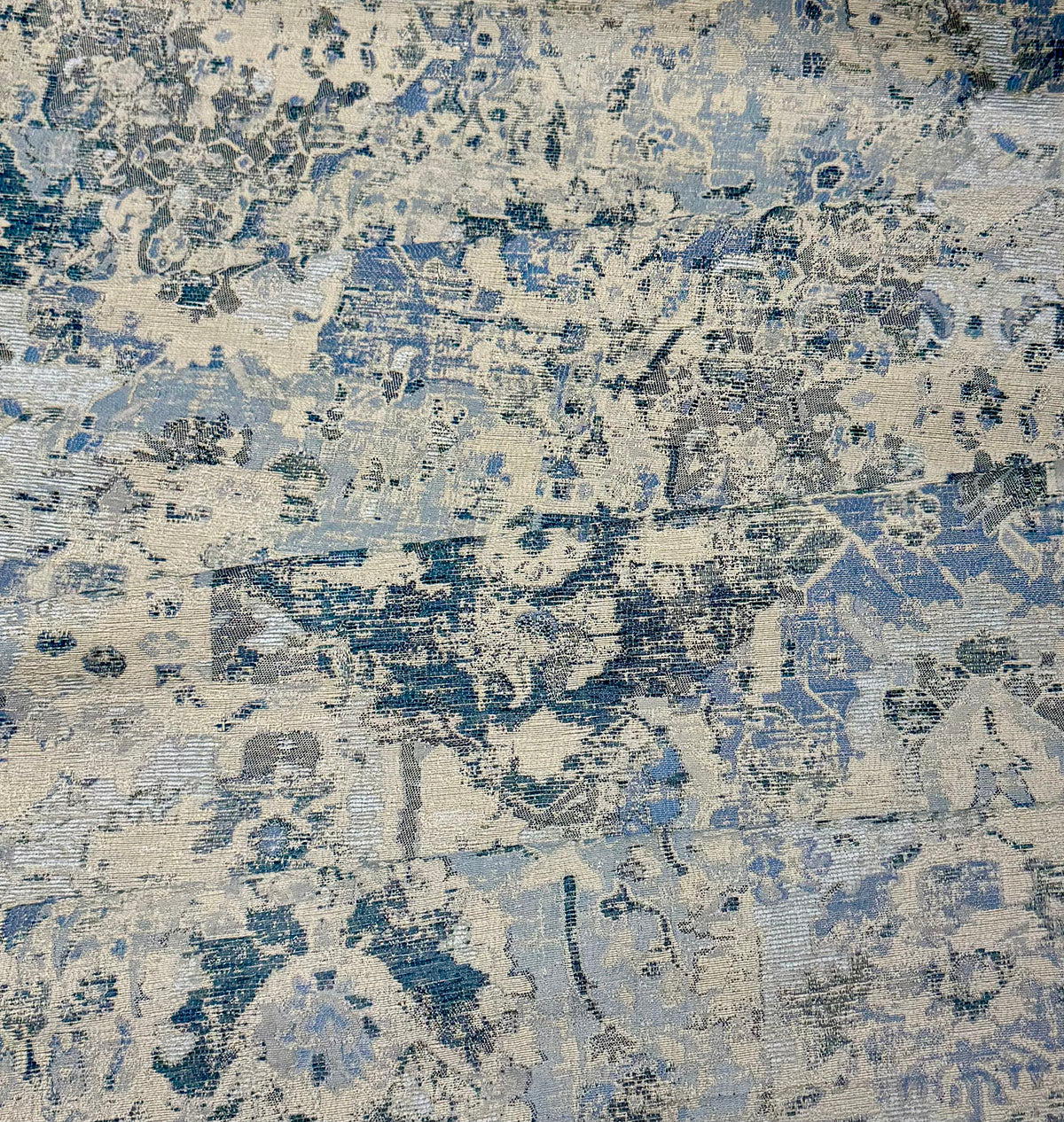 Alcan in the color Indigo is a Chenille Abstract Rug Look, 54" Wide, 59% Polyester 41% Poly Chenille, Repeats: H=28" V=28" Double Rubs: exceeds 15,000