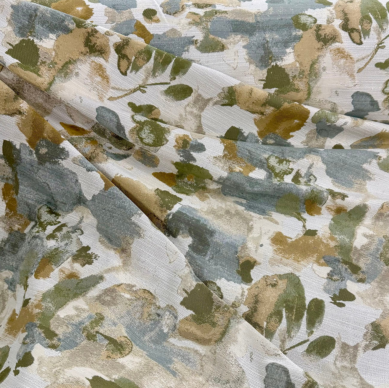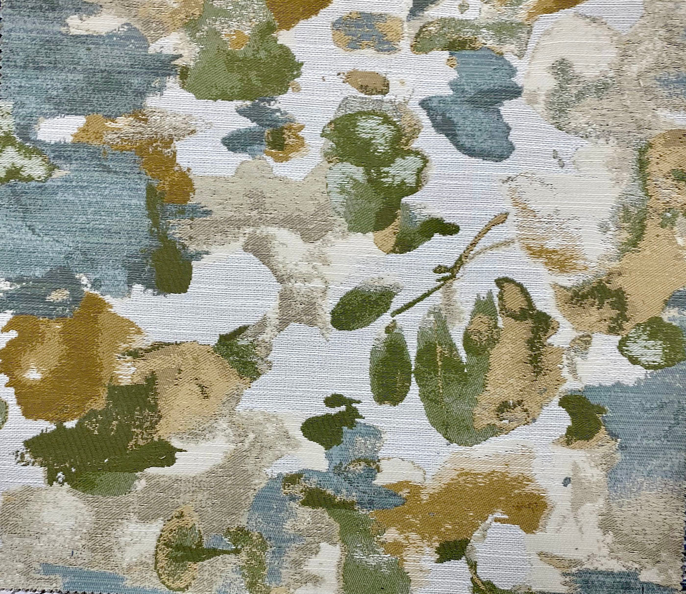 Benirras in the color Spring is an Abstract fabric, 54" Wide, 98% Poly 2% Poly Chenille, Repeats: H=29.5" V=26.75" Double Rubs: 15,000