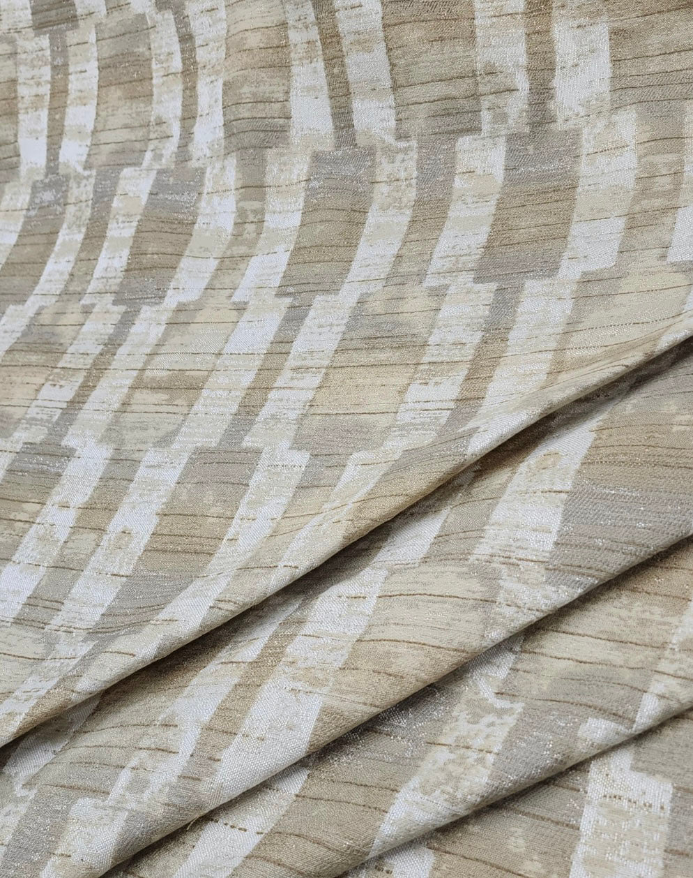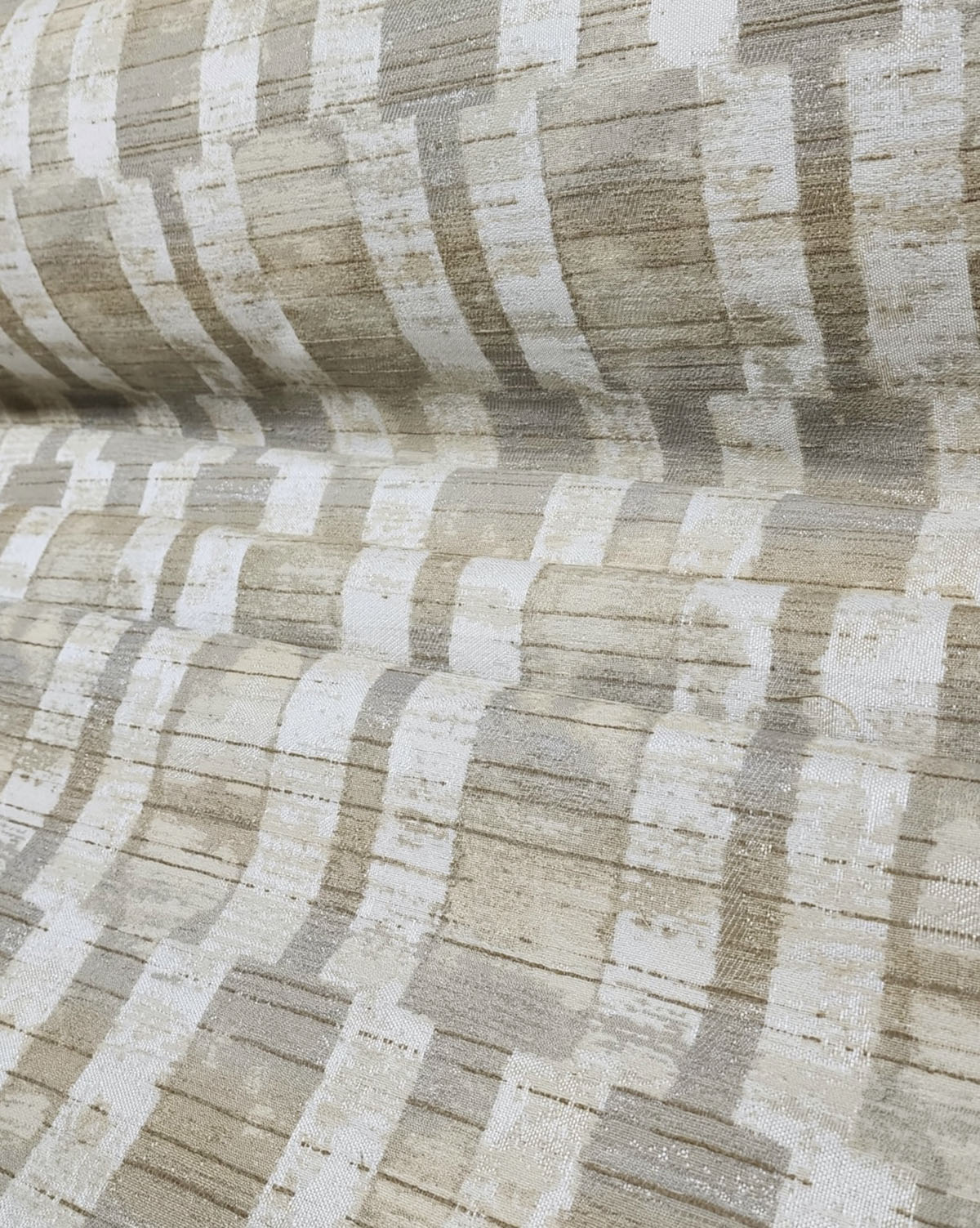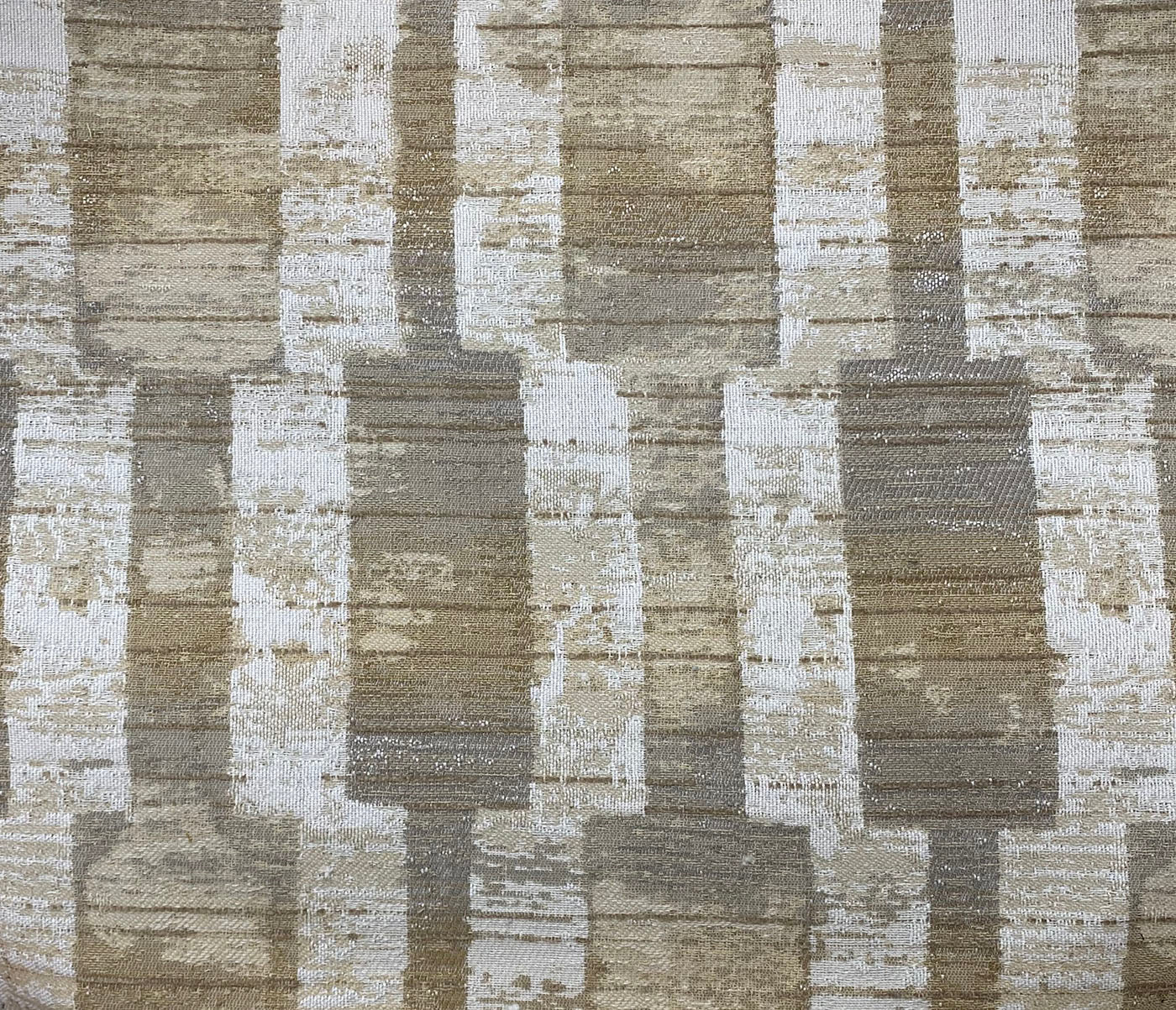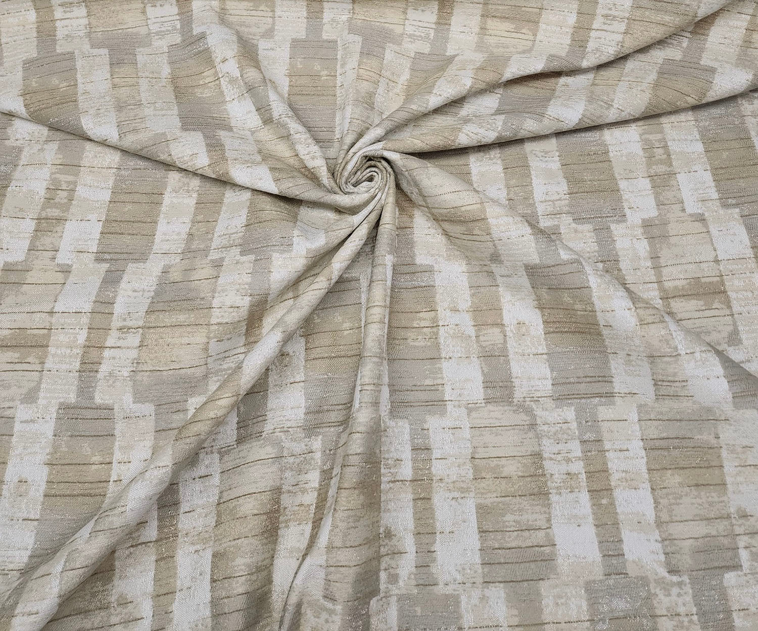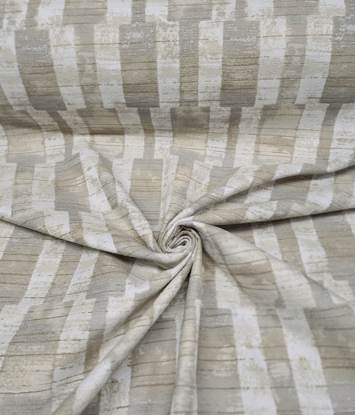 Contender in the color Sand is a Geometric Stripe, 54" Wide, 97% Poly 3% Poly Chenille, Repeats: H=14" V=24.25" Double Rubs: 30,000