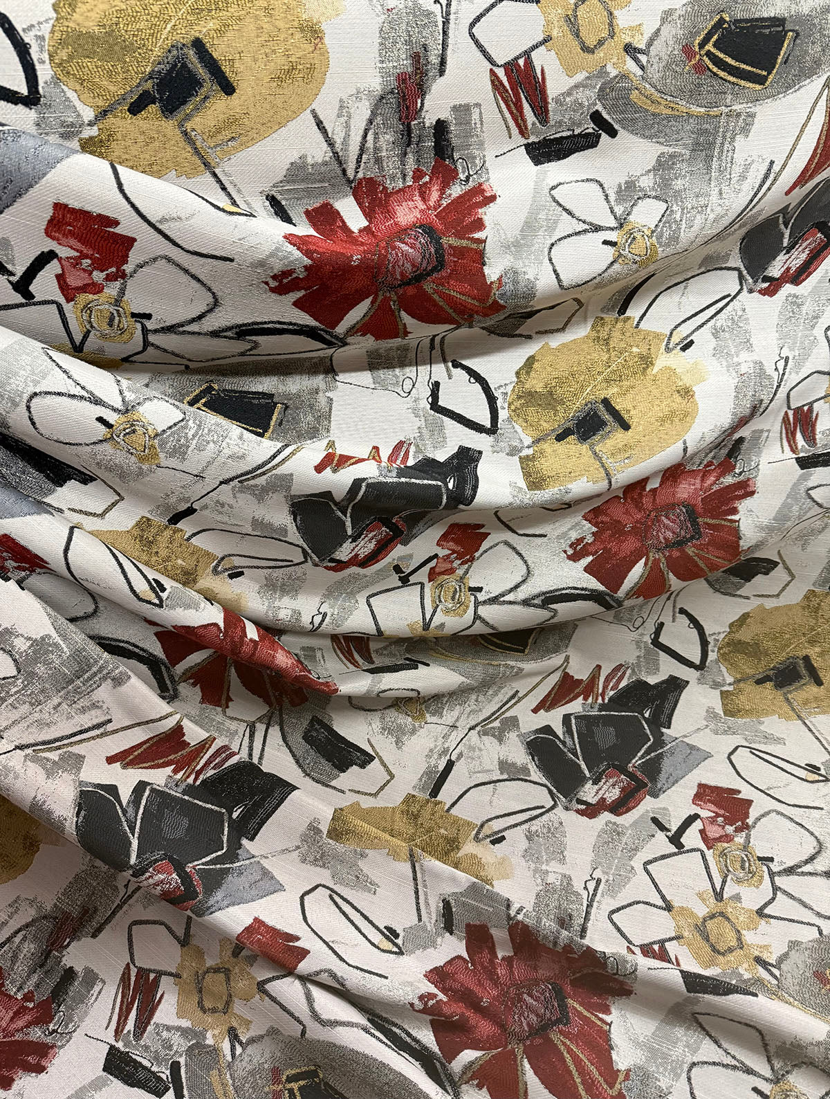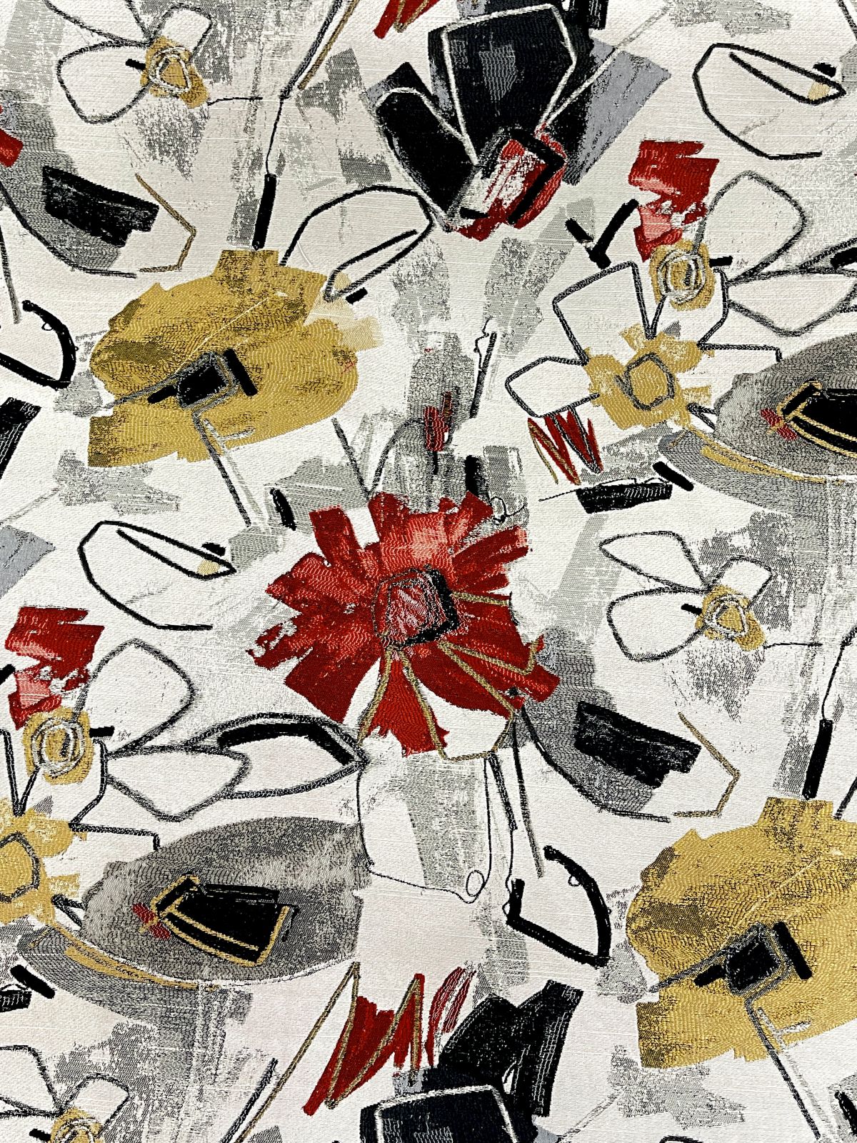 Delightful in the color Cardinal is a Abstract Floral, 54" Wide, 100% Polyester, Repeats: H=29" V=26.875" Double Rubs: 12,000