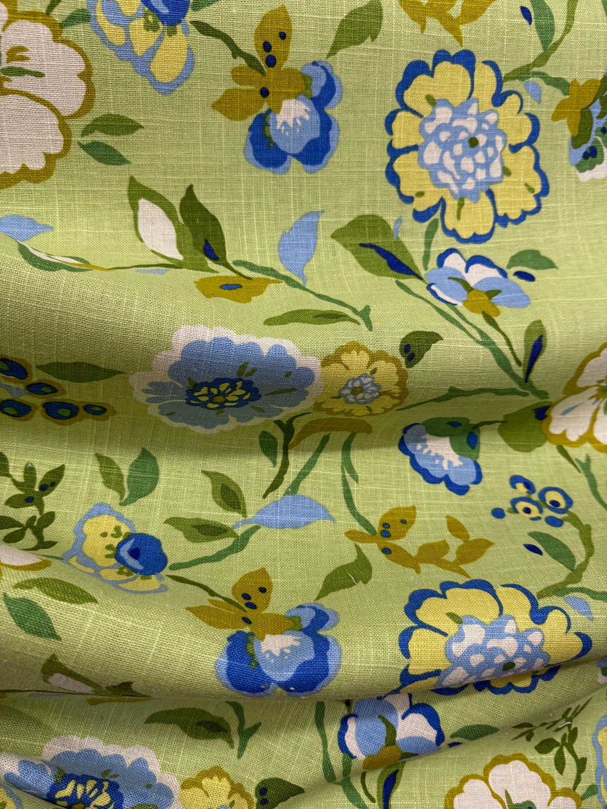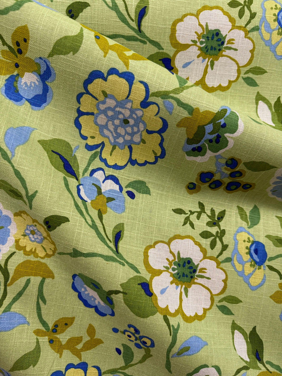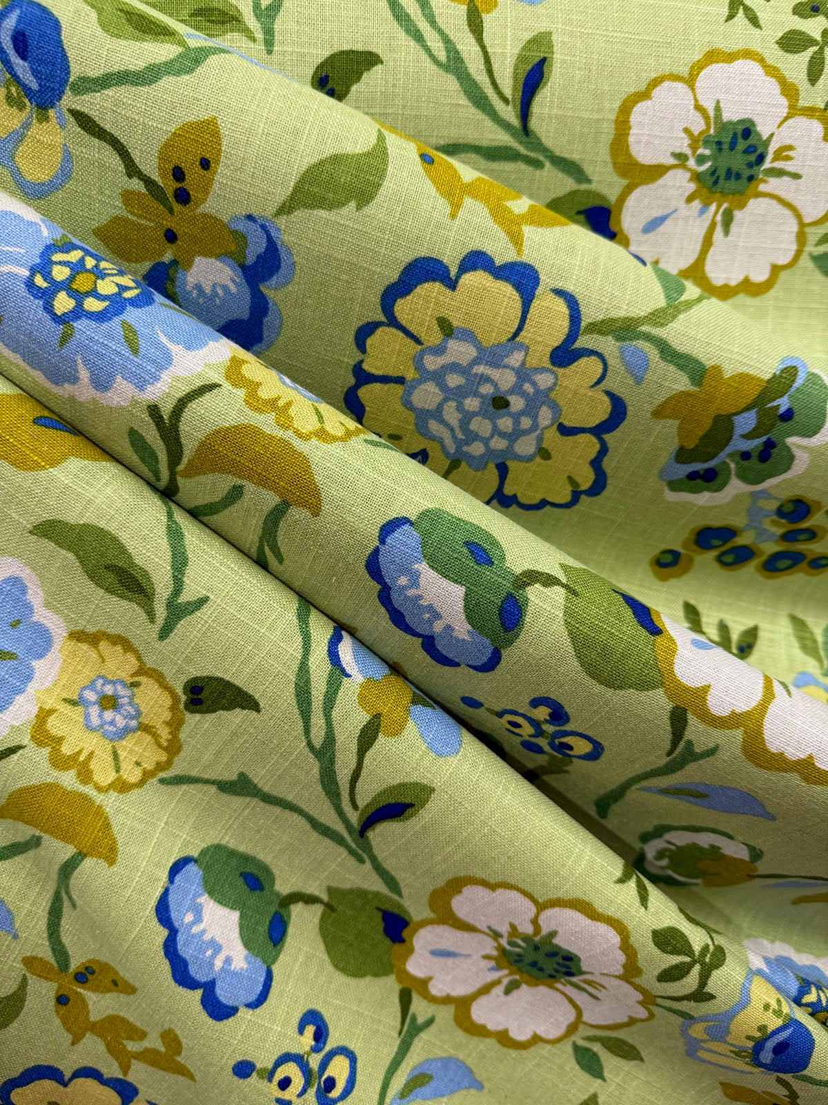 Happy Go Lucky in the color Key Lime is a Floral, 54" wide, 55% Linen 45% Rayon Repeats: H=27.5" V=12.75" Double Rubs: 12,000