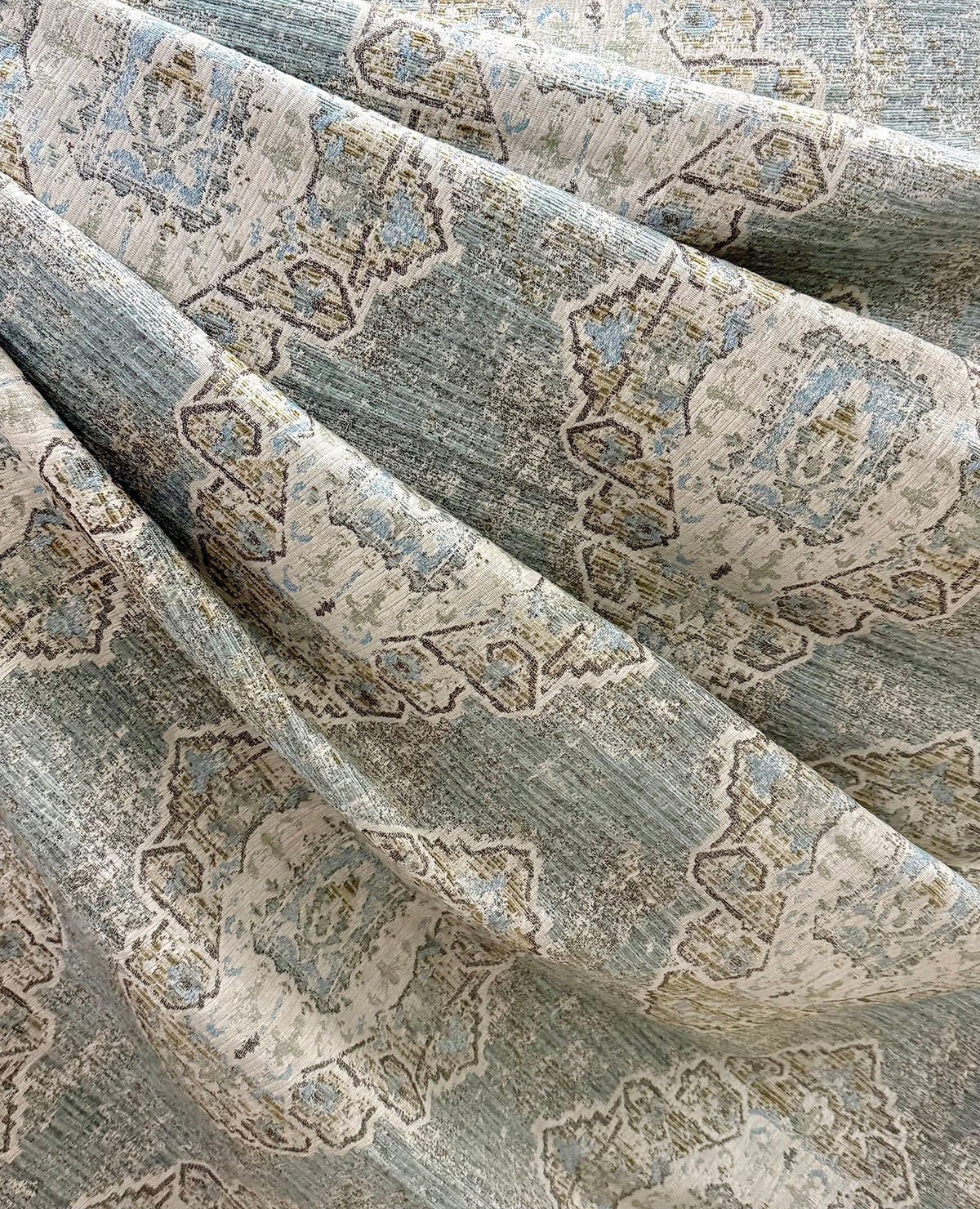 Lake Mead in the color Seafoam is a Framed Tapestry, 54" Wide, 100% Polyester, Repeats: H=147" V=27" Double Rubs: exceeds 15,000