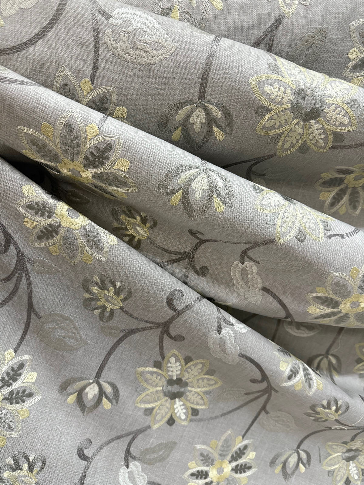 Embroidered Floral, 54" wide, 48% Poly 52% Cotton, Repeat: H=26" V=18.5 ", Double Rubs: 15,000. This special buy fabric is a unique find and is a one-time offer. Once it's sold out, you won’t be able to reorder, so make sure to get enough yardage.