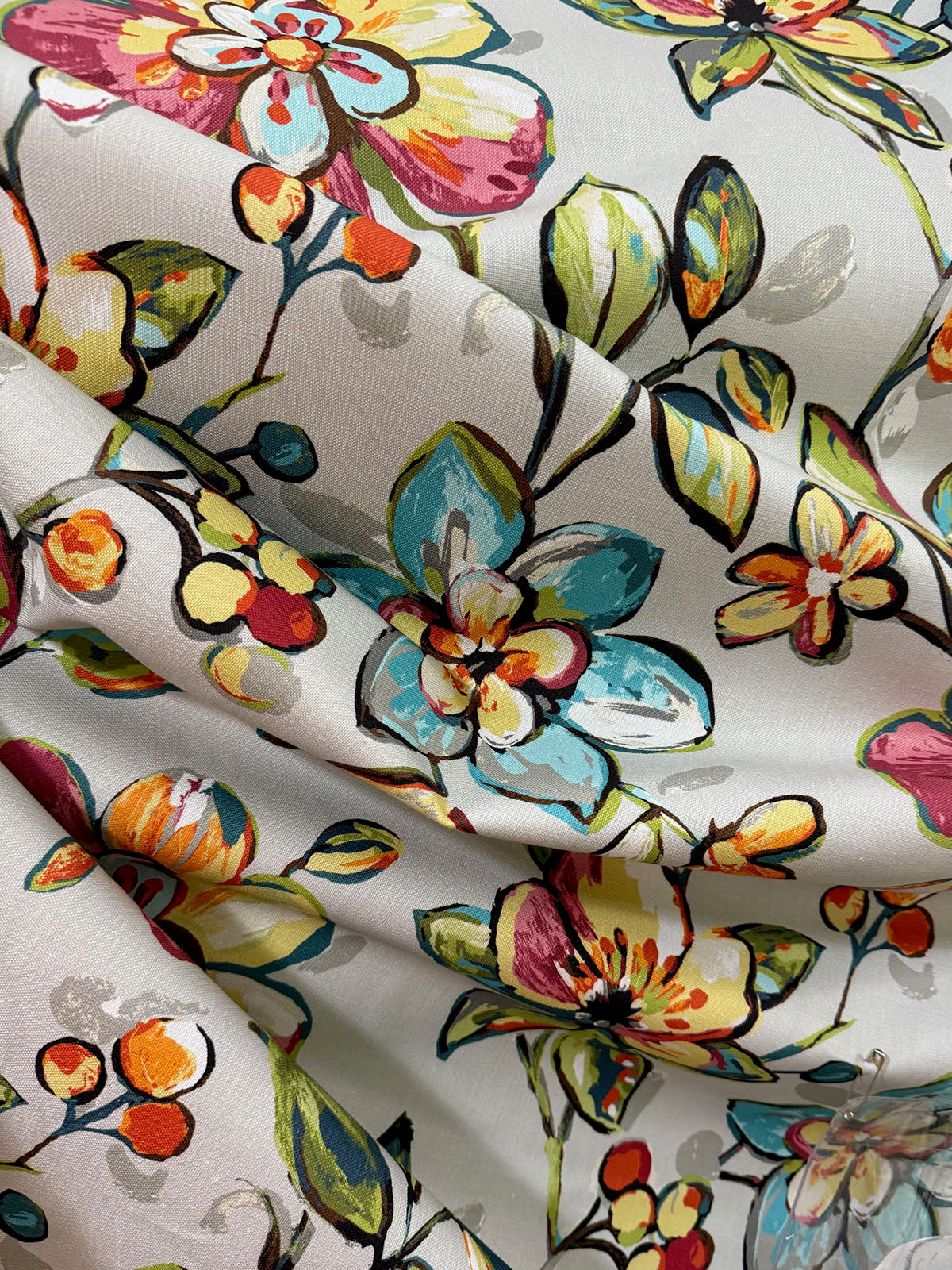 Oskaloosa in the color Silverpine is a Floral, 54" wide, 100% Cotton, Repeats: H=27" V=27" Double Rubs: 25,000