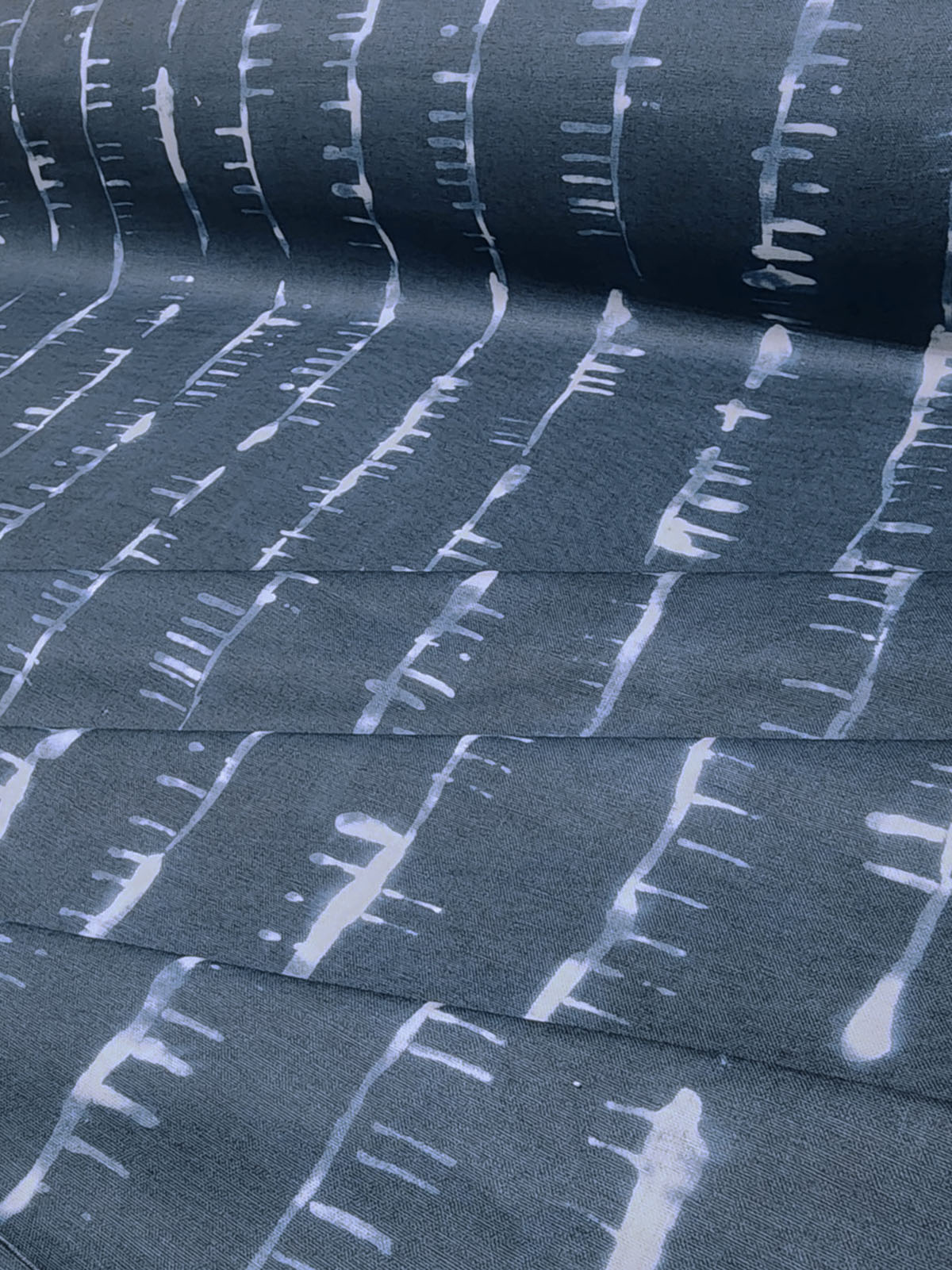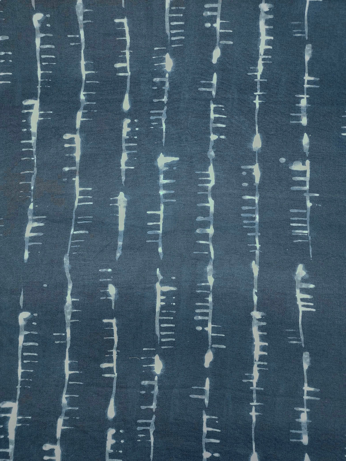 Tritik Petro in the color Indigo is UTR Batik Stripe, 55.5" wide, 100% Cotton Repeats: H=27.75" V=20" Double Rubs: Exceeds 30,000