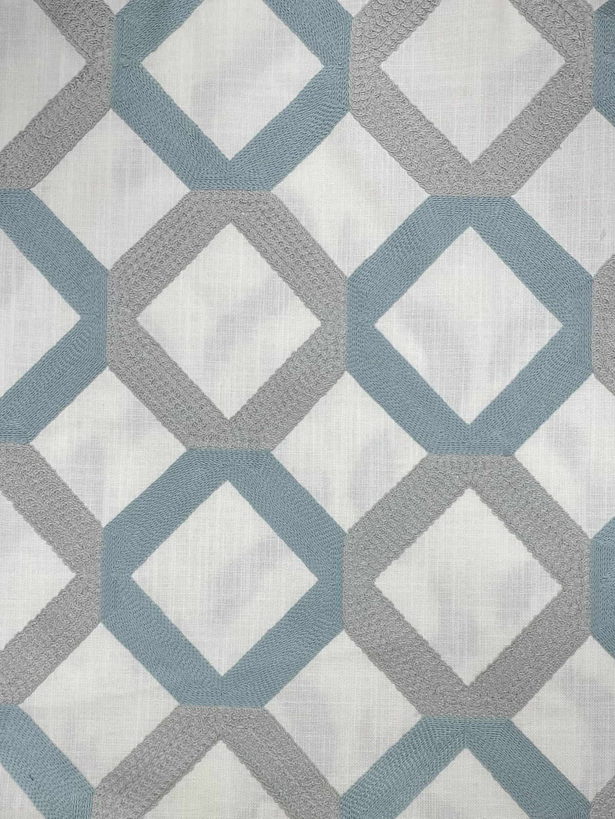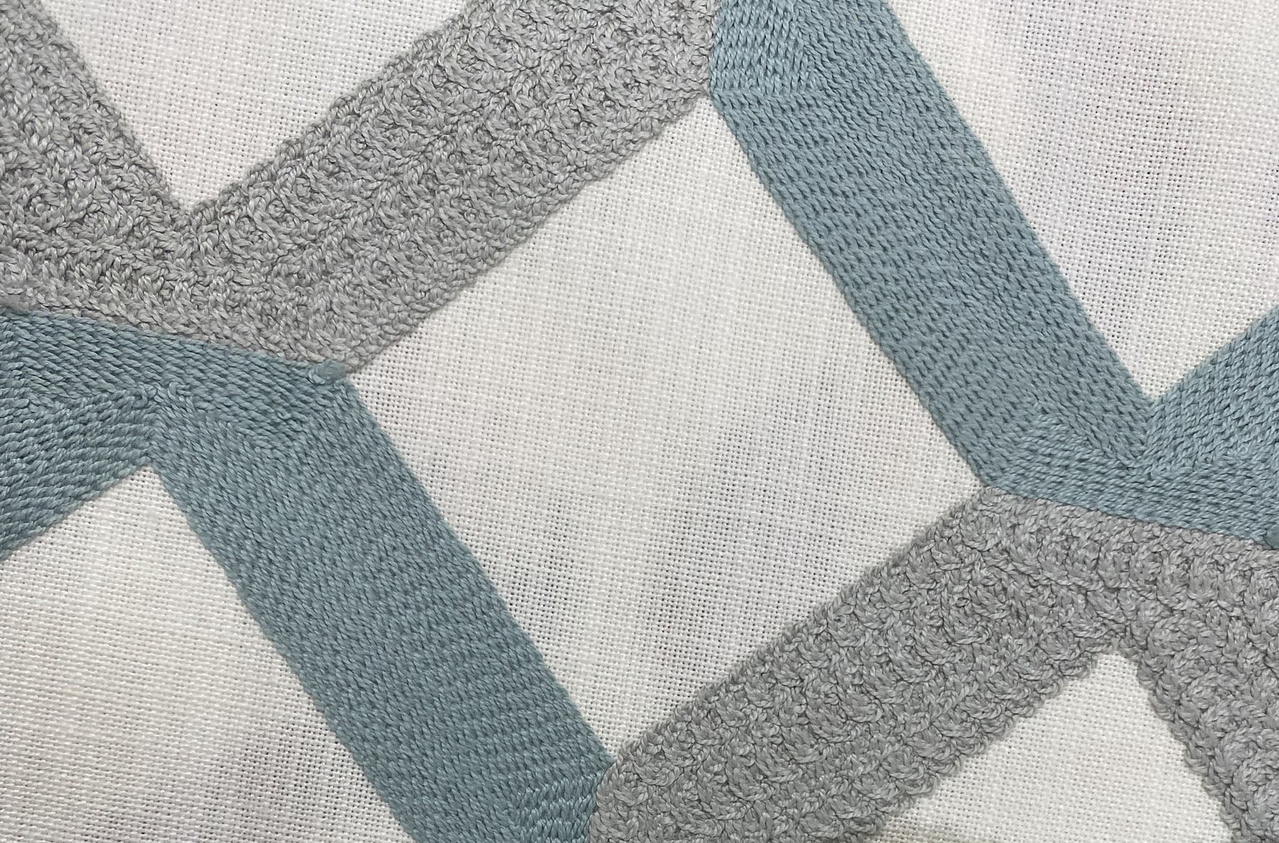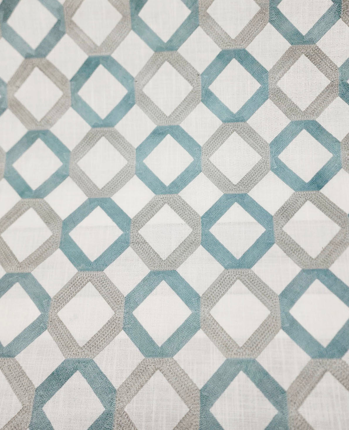 Truth Teller in the color Mineral is an Embroidered Diamond fabric 54" Wide, 73% Cotton 27% Polyester with 100% Cotton Embroidery, Repeats: H=9" V=9.625" Double Rubs: 30,000