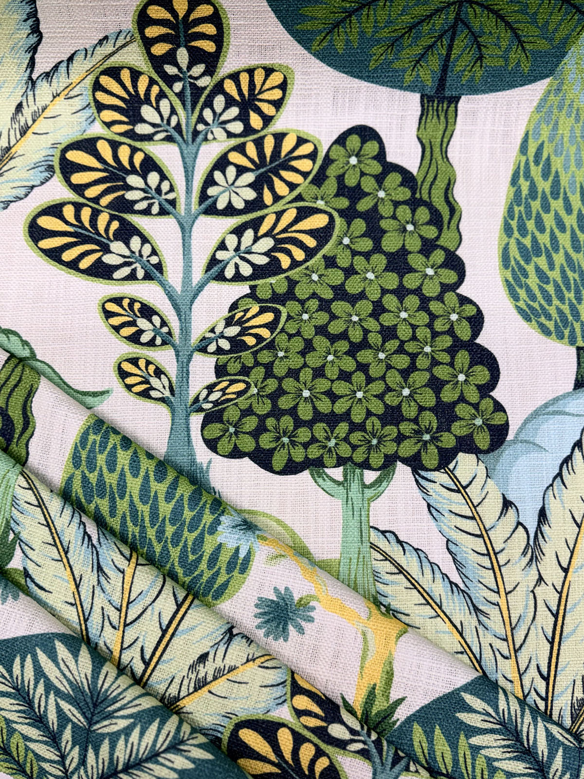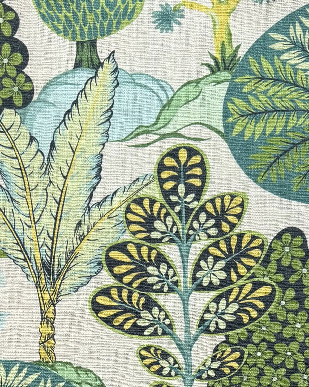 Yaso Marvy in the color Curacao is a Woven Botanical, 54" Wide, 100% Cotton, Repeats: H=27.5" V=27" Double Rubs: Exceeds 30,000