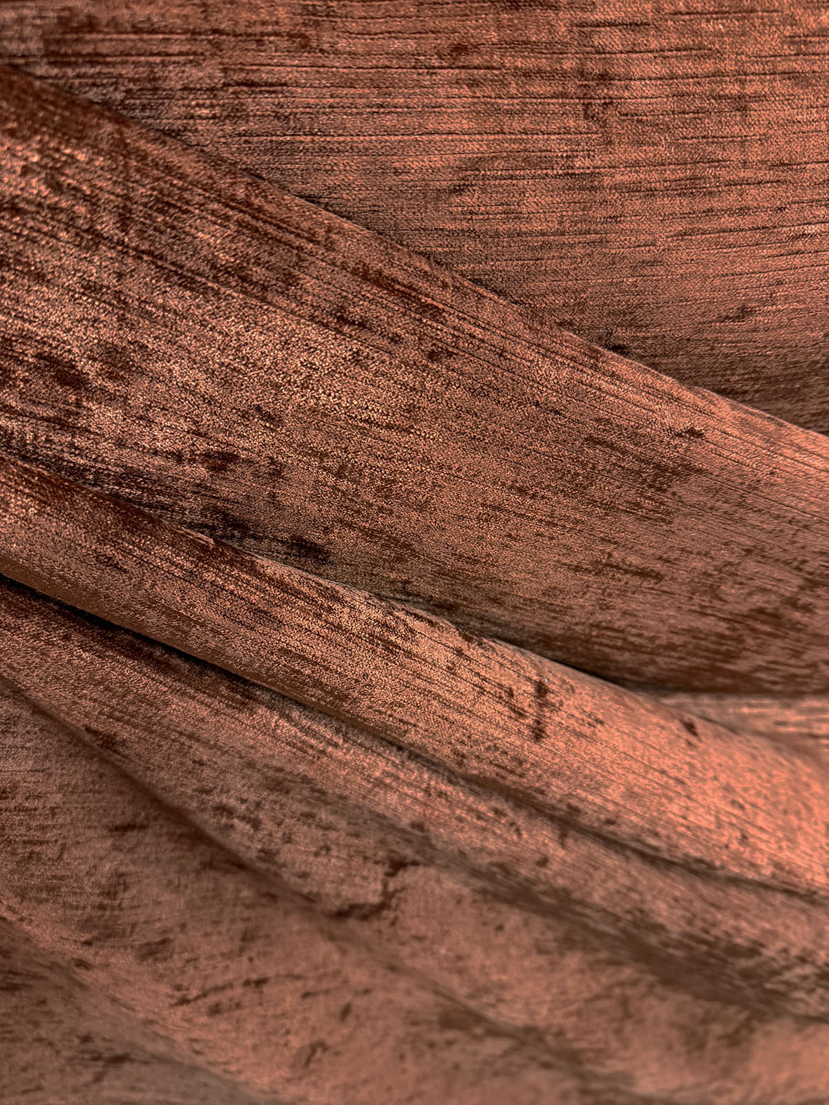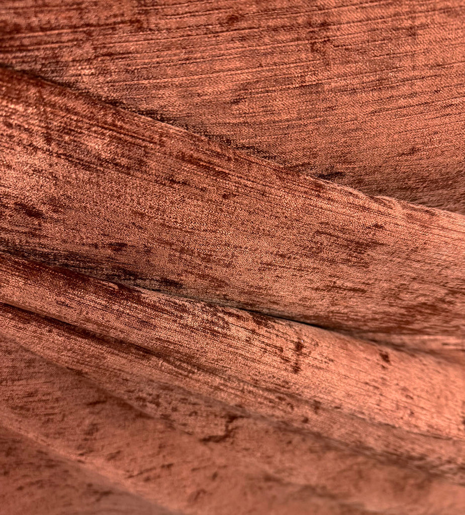 Bristol in color Sienna is a rust Chenille Solid, 56" wide, 100% Polyester, Repeat: H=0" V=0, Double Rubs 30,000