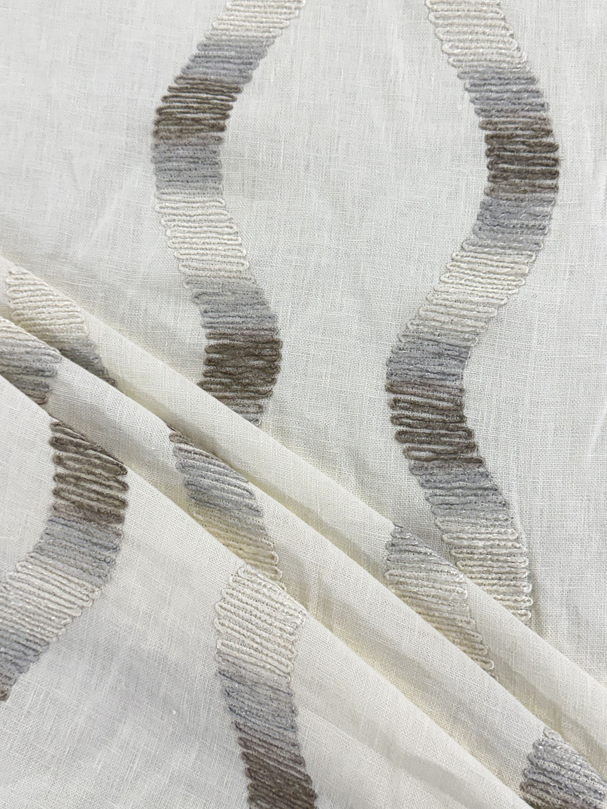 Harbour Wave in color Buff is a Jute Embroidered Wave Stripe, 54" Wide, 100% Linen, Embroidery-80% Linen 20% Viscose, Repeats: H=12" V=3.10"