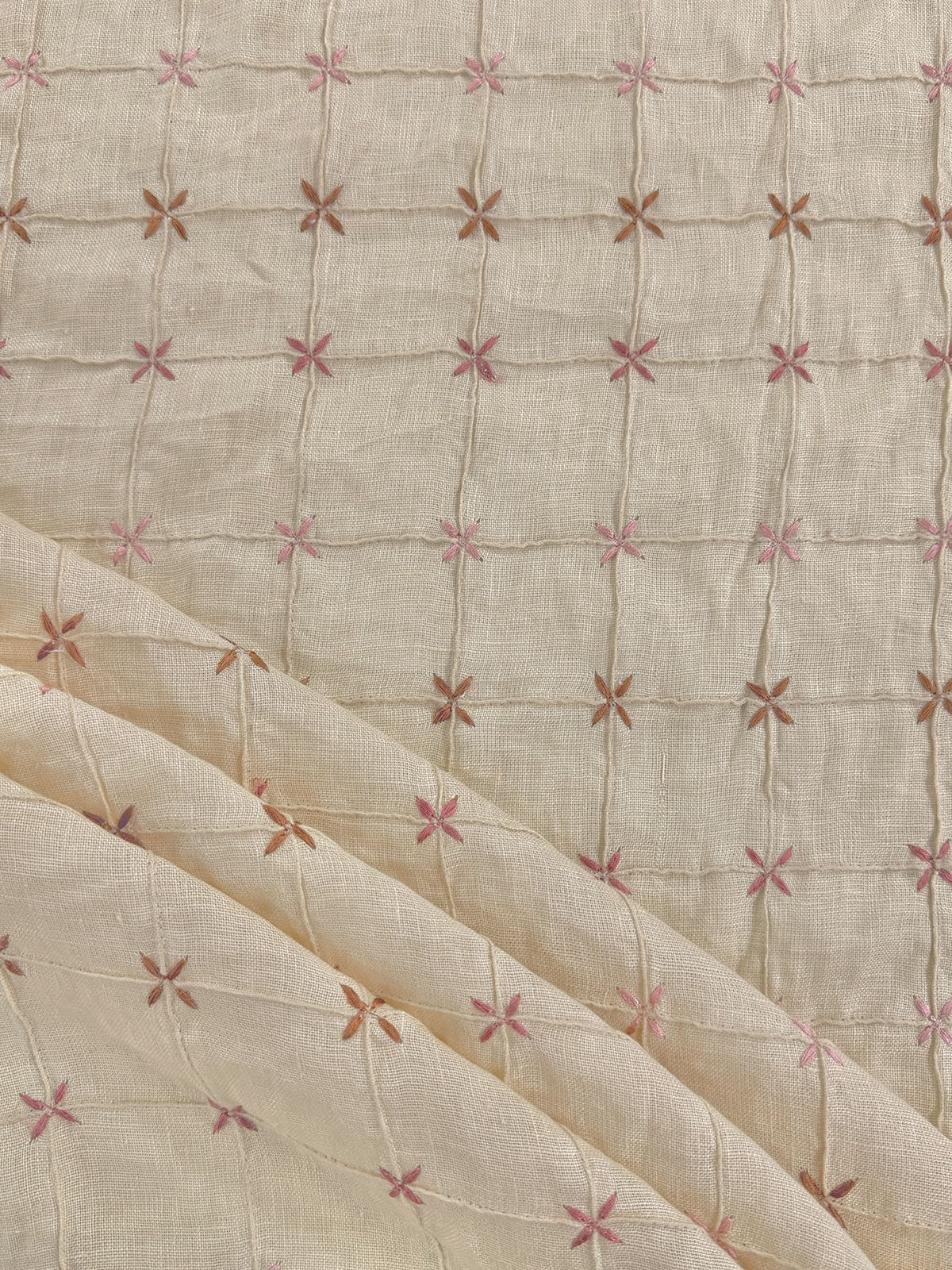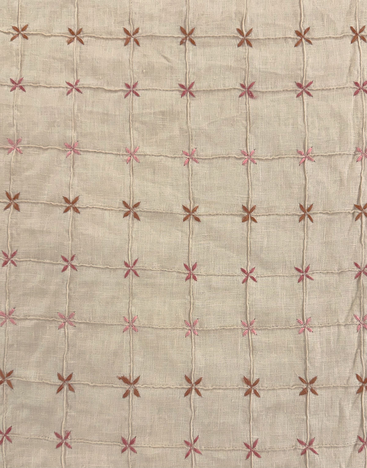 Keynes in color Coral is a Embroidered Squares w/Flowers fabric, 52" Wide, Content: Linen Blend, Repeats: H=2" V=2"