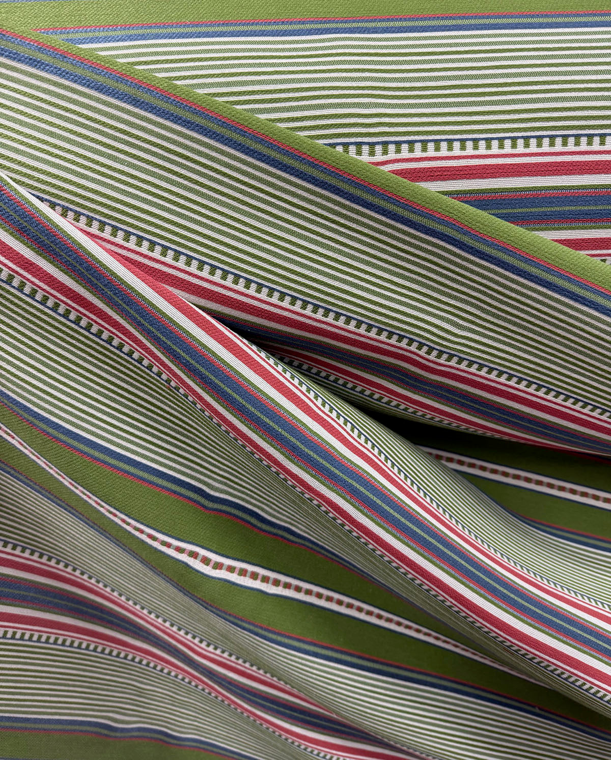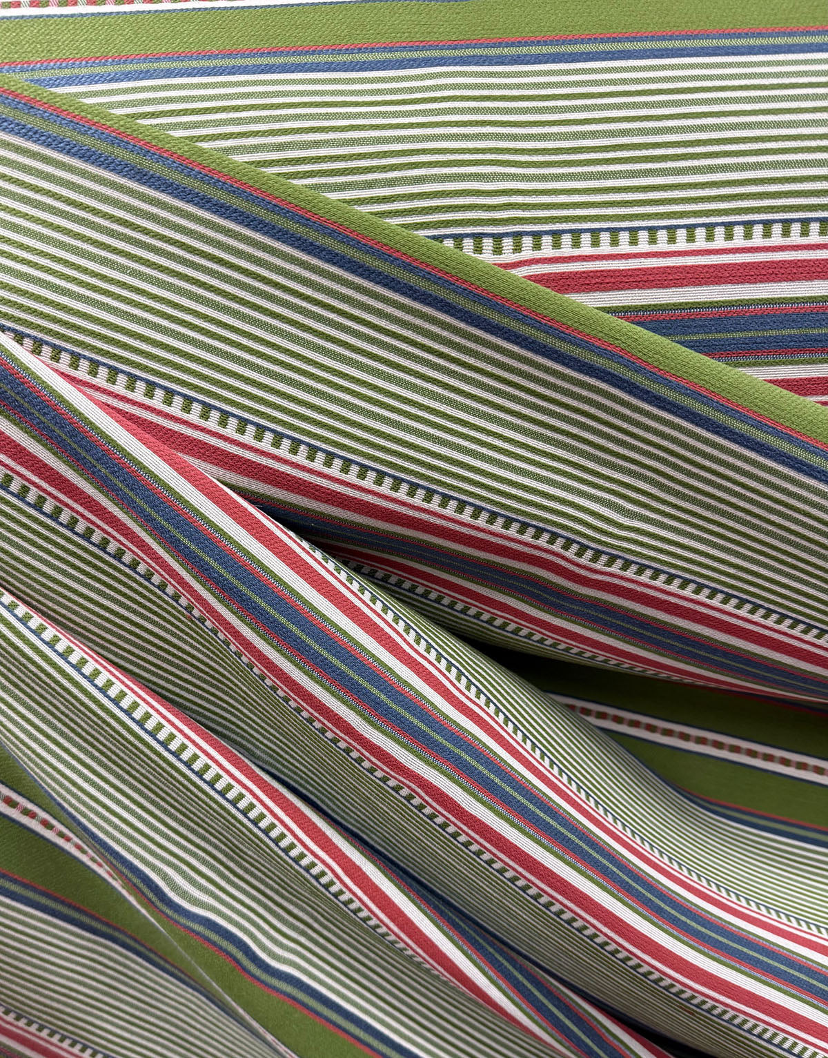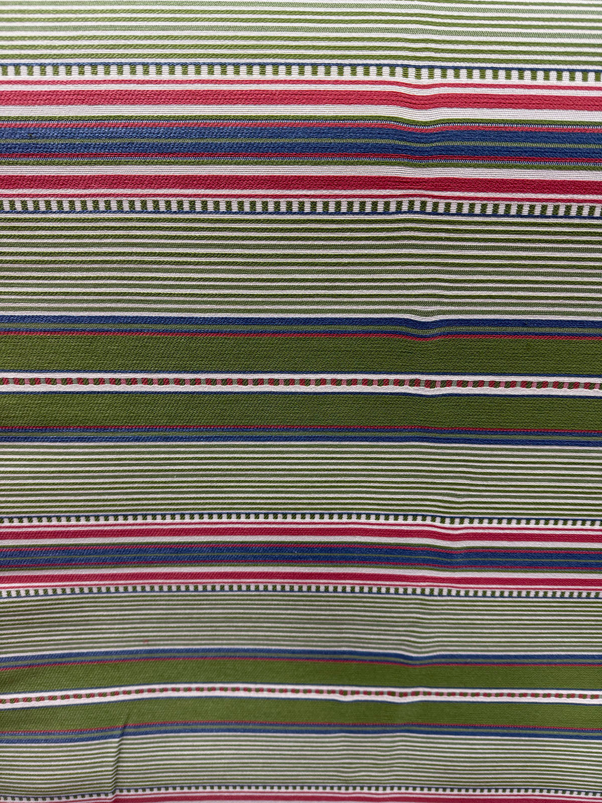 R-Umbrella in color Grass is a Pink Green and Blue Stripe, 54" wide, 71% Polypropylene 29% Polyester, Repeat: H=11", V=0.25" Double Rubs: 70,000,