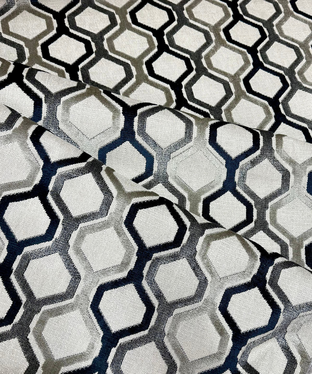 Cut Velvet Lattice, 54" wide, 65% Rayon, 20% Polyester 15% Linen, Repeat: H=5.25" V=7" Double Rubs: 15,000. This special buy fabric is a unique find and is a one-time offer. Once it's sold out, you won’t be able to reorder, so make sure to get enough yardage.
