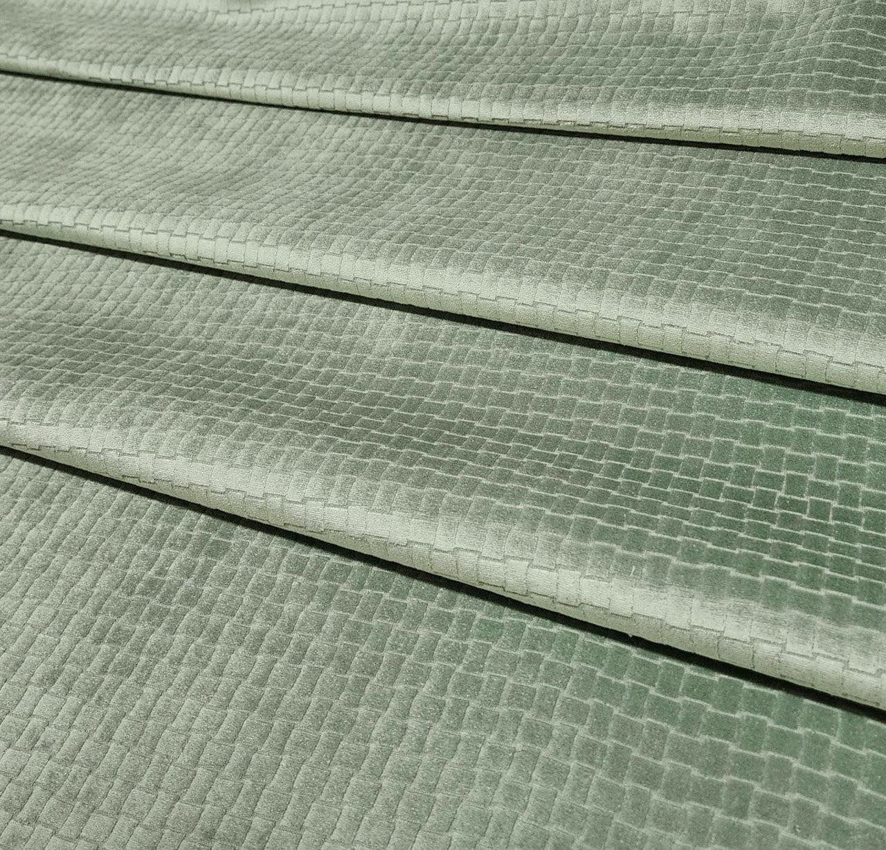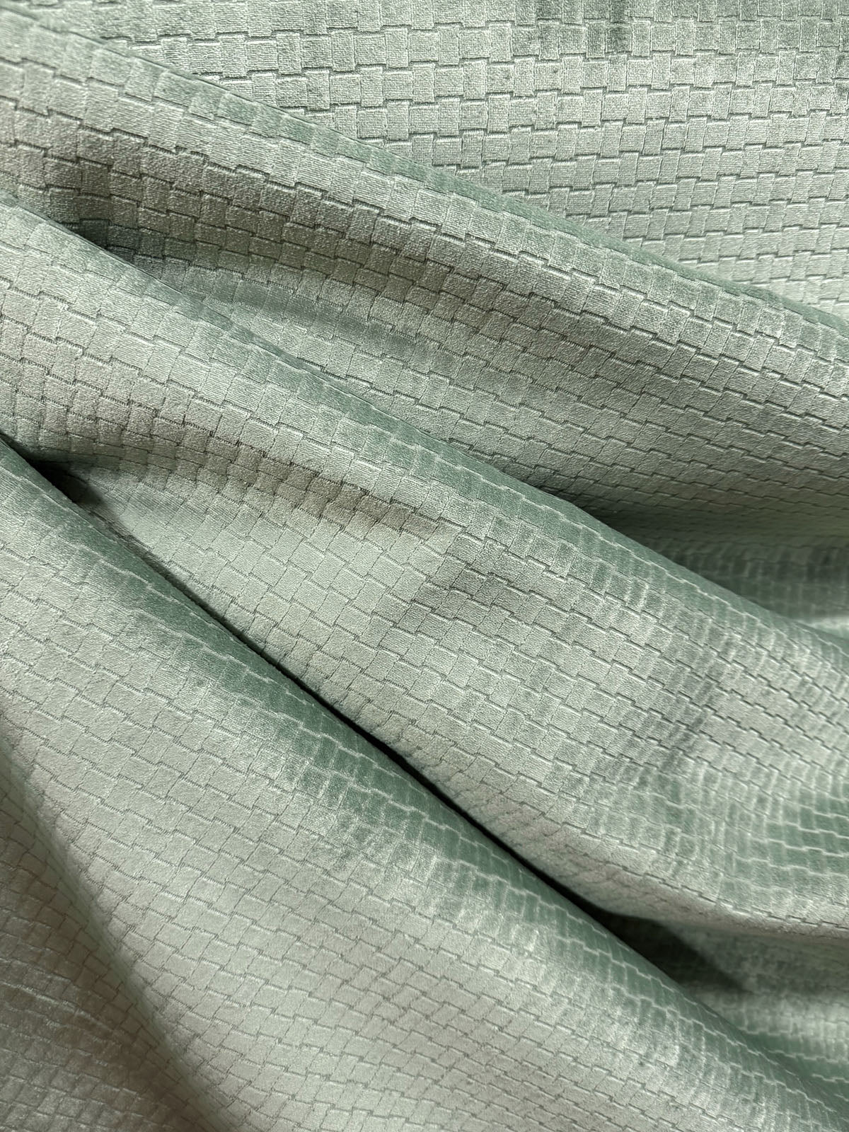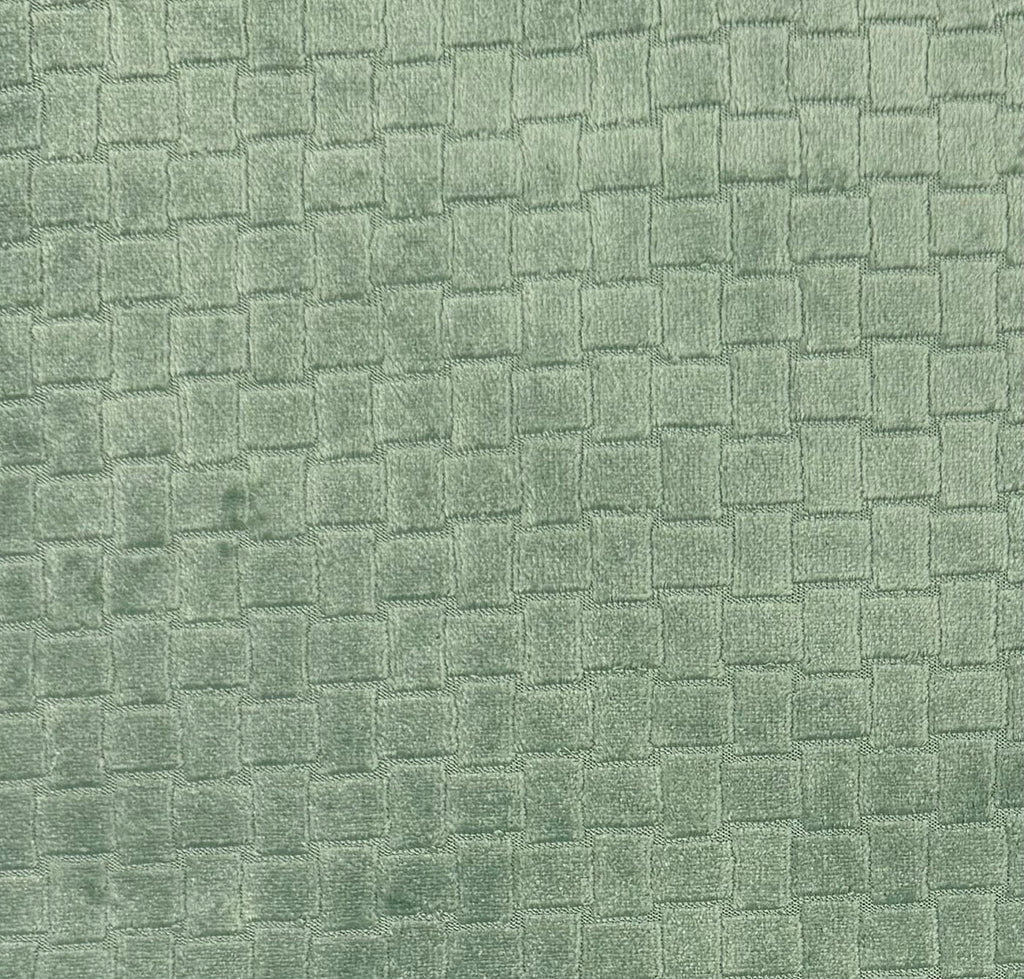 R-Fraction in the color Sea is an Embossed Velvet Basketweave, 54" Wide, 100% Polyester, Repeats: H=1" V-1.5" Double Rubs: 60,000