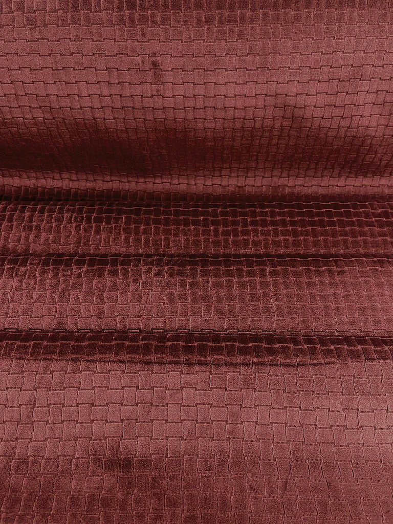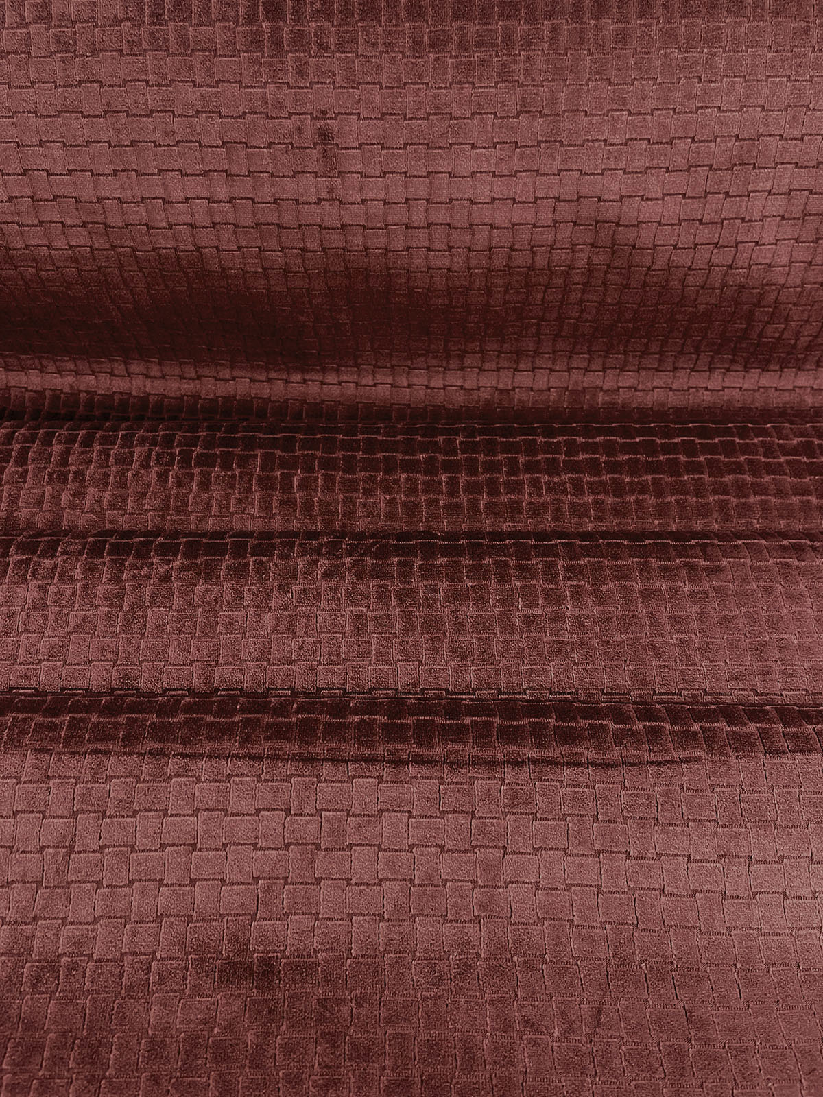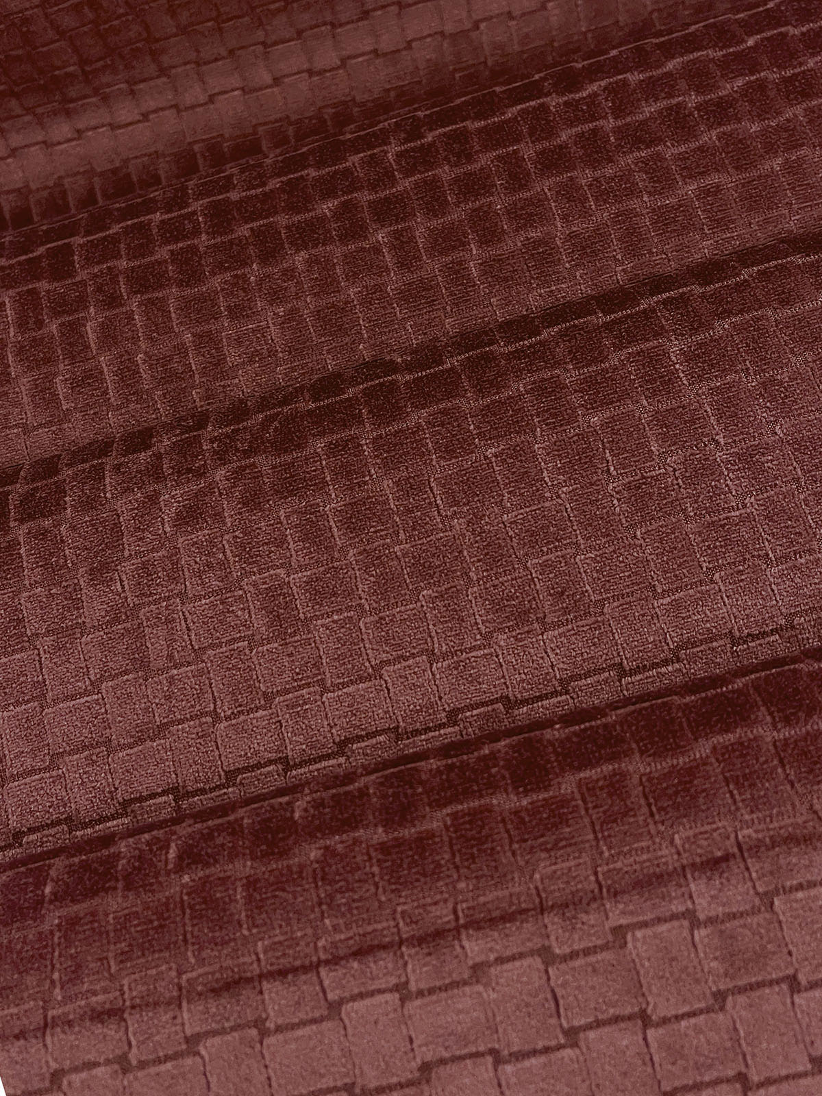 R-Fraction in the color Spice is a rich Embossed Velvet Basketweave, 54" Wide, 100% Polyester, Repeats: H=1" V-1.5" Double Rubs: 60,000